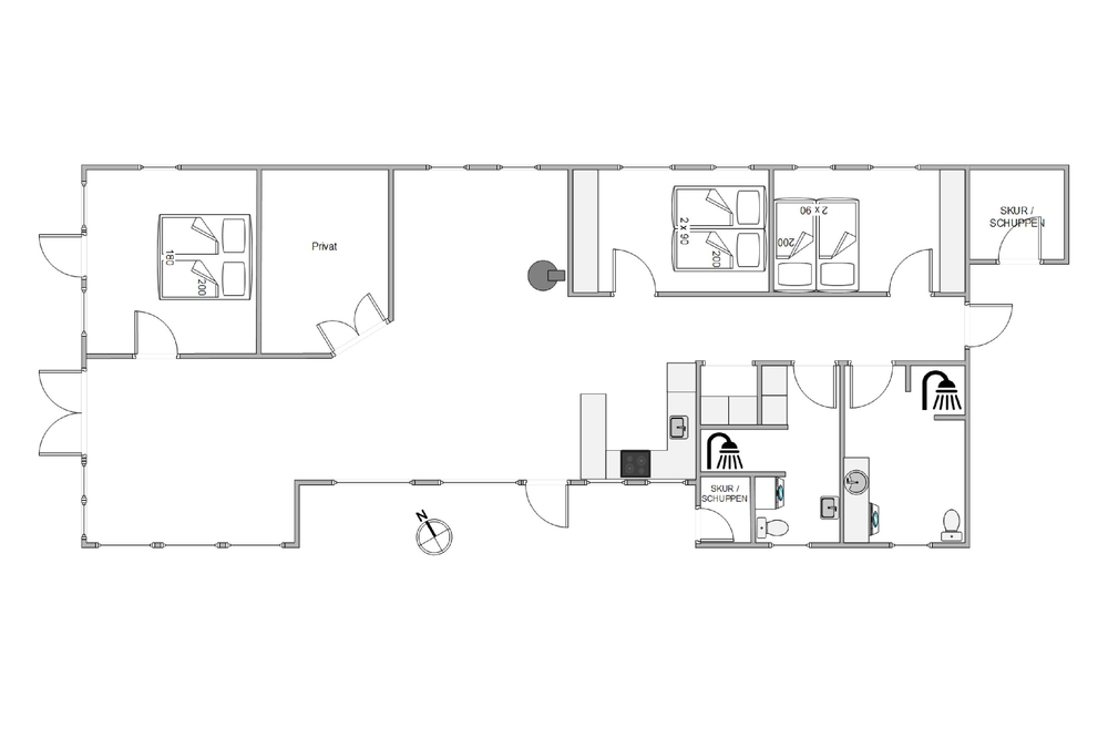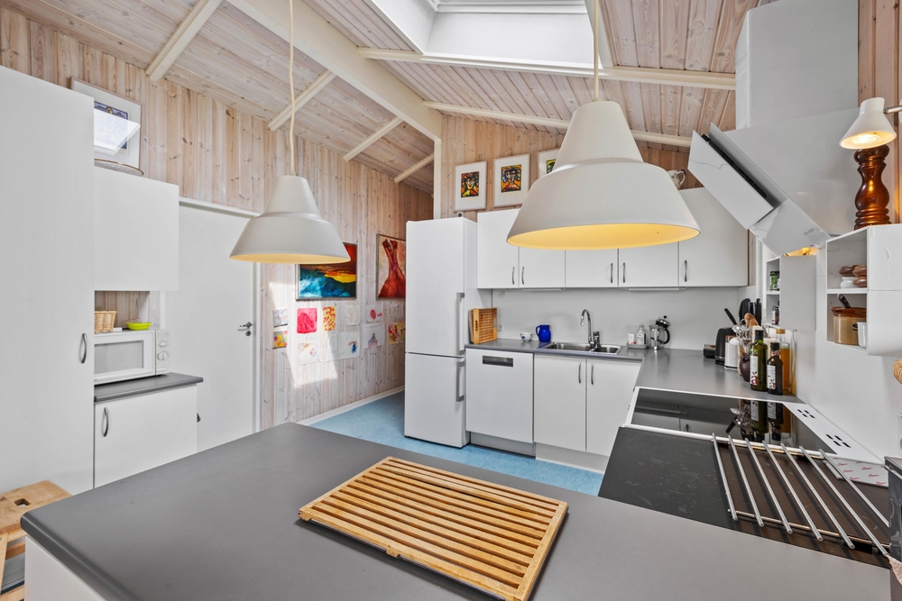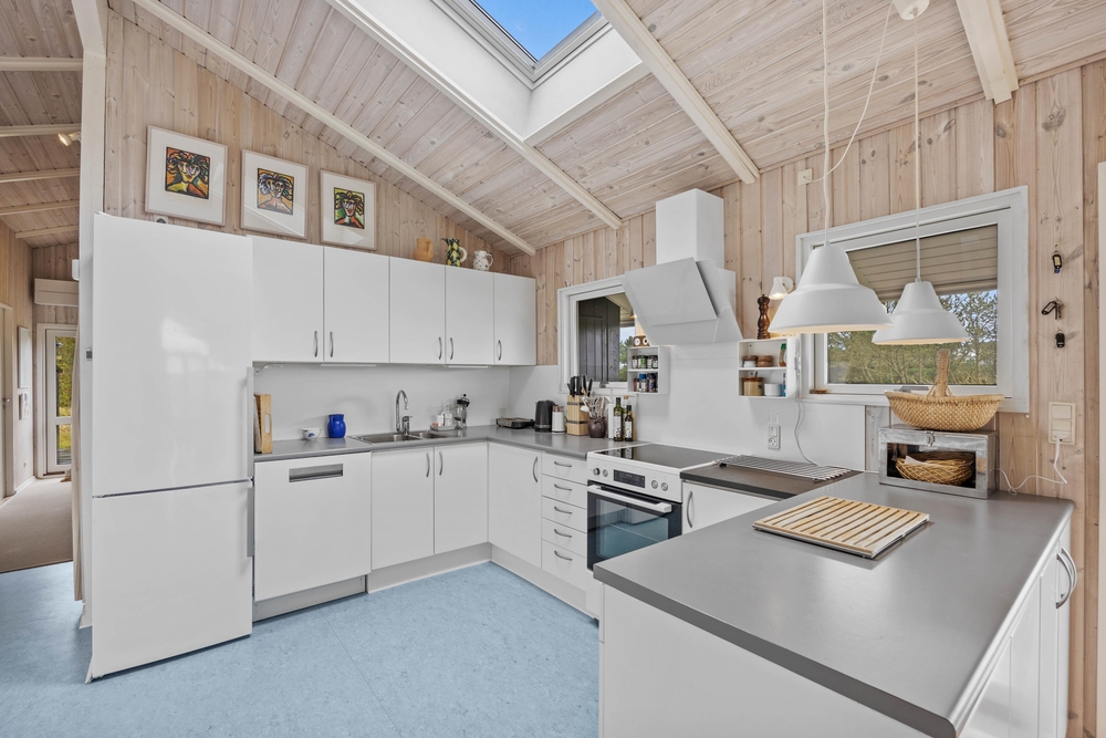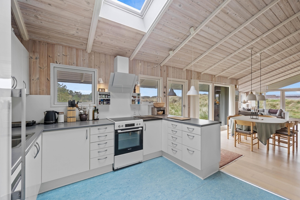 Die gut ausgestattete Küche bietet alles, was für ein entspanntes Kochen benötigt wird. Dazu gehören u. a. ein Induktionsherd und eine Spülmaschine. Drei Schlafzimmer, alle mit Doppelbetten ausgestattet, sorgen dafür, dass einer erholsamen Nacht nichts im Wege steht. Praktischerweise gibt es im Ferienhaus 2 Bäder, beide mit Fußbodenheizung ausgestattet.