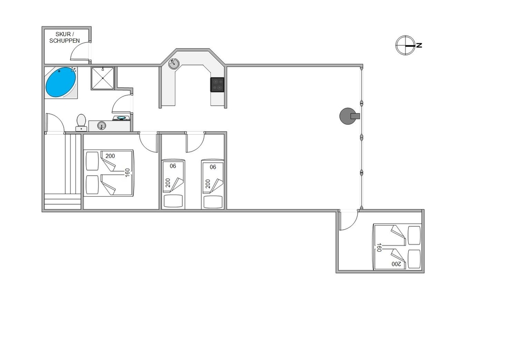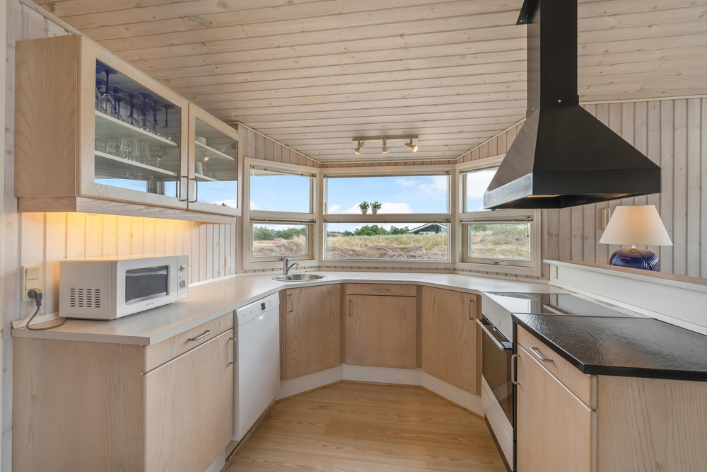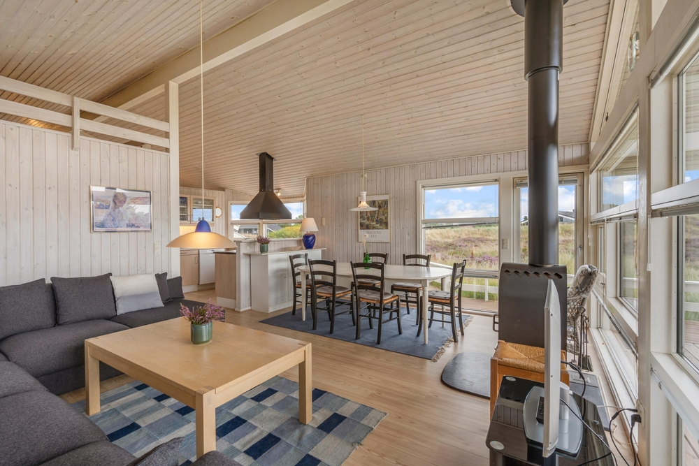 Ein gemütliches und helles Ambiente erwartet euch, wenn ihr die Räume eures Ferienhauses betretet. Küche, Wohn- und Essbereich sind alle miteinander verbunden. Gemütliche Stunden, eingekuschelt auf dem Sofa, vor dem wärmenden Kaminofen oder bei einem leckeren, dänischen ?Frokost? am Esstisch, könnt ihr hier genießen. Das Haus hat eine energiesparende Wärmepumpe, mit der ihr die Räume kostengünstig aufheizen könnt.