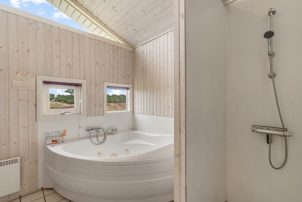 Das Haus hat 3 Schlafzimmer, die alle mit Doppelbetten ausgestattet sind. Ungestörter Schlaf in der ruhigen Umgebung und der gesunden Meeresluft ist hier garantiert. In dem Badezimmer mit Fußbodenheizung kann morgens jeder in Ruhe wach werden und frisch in den Ferientag starten.