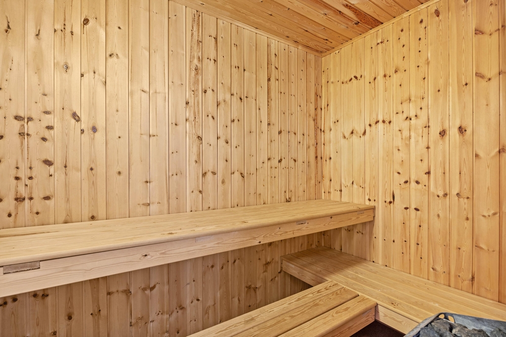 Das Badezimmer ist mit Fußbodenheizung und einer Sauna ausgestattet ? perfekt zum Entspannen nach einem Tag voller Outdoor-Aktivitäten. Darüber hinaus gibt es eine Waschmaschine, um die Handtücher während des Urlaubs aufzufrischen.