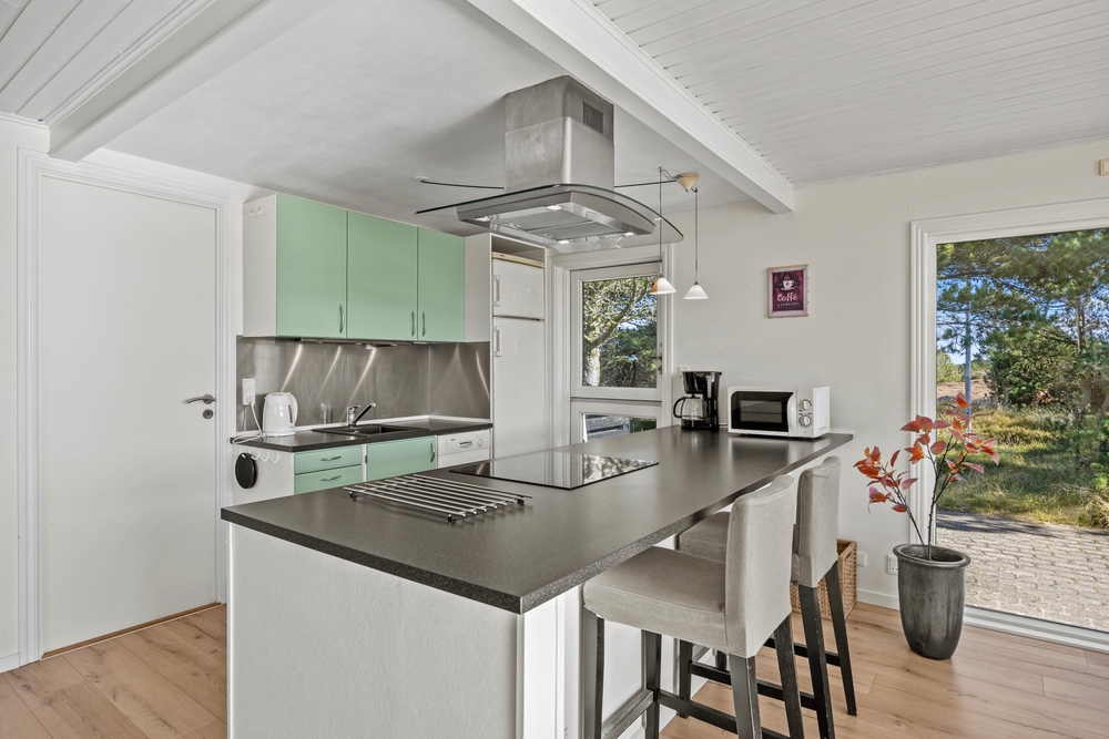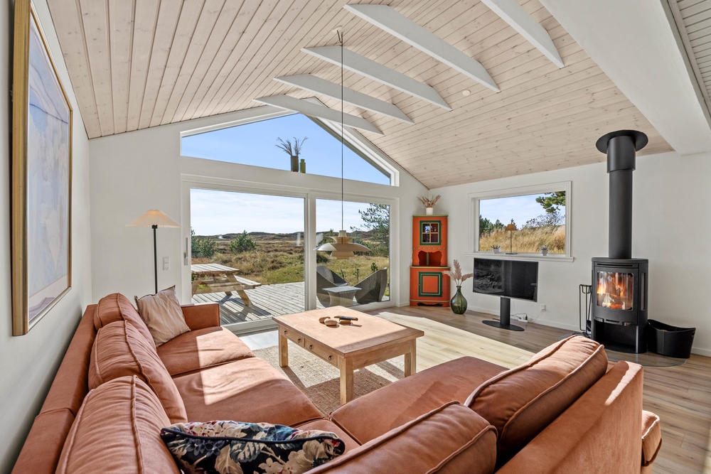 Die Urlaubsstimmung ist sofort spürbar, sobald du die Tür zu Hedetoften 6 in Rindby auf Fanø öffnest. Die insgesamt 95 Quadratmeter sind gemütlich eingerichtet, darunter ein Kaminofen, der an kühleren Abenden für zusätzliche Wärme und Gemütlichkeit sorgt. Die eingebaute Wärmepumpe sorgt das ganze Jahr über für ein angenehmes Raumklima.