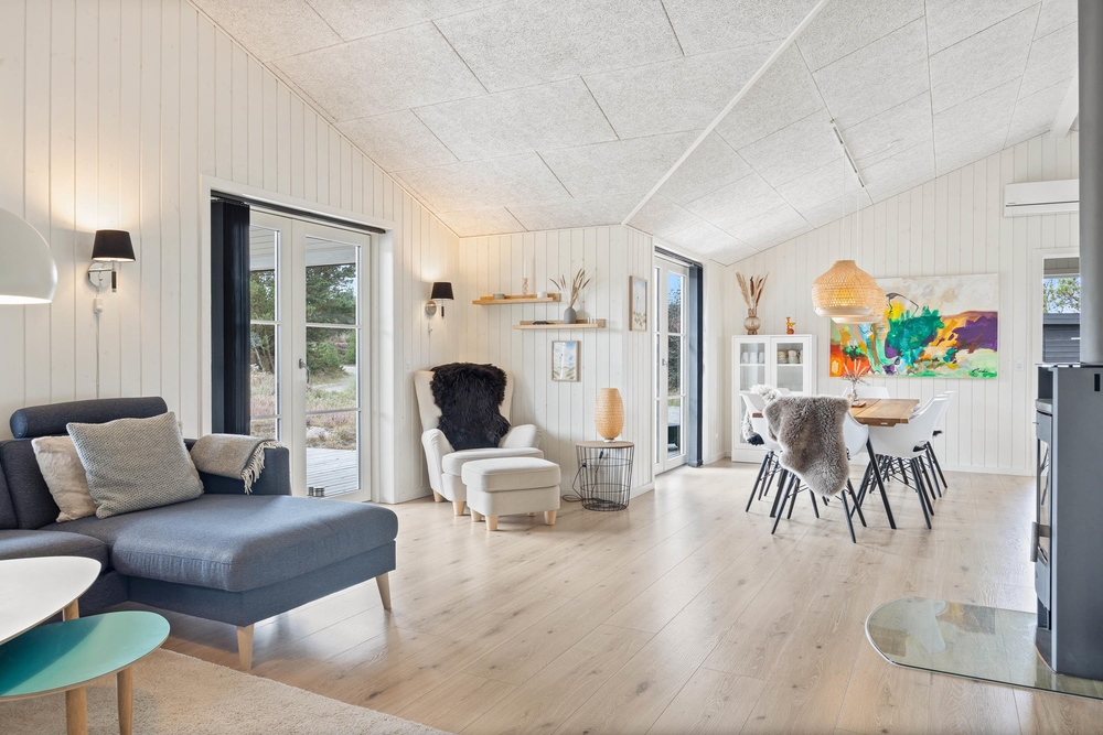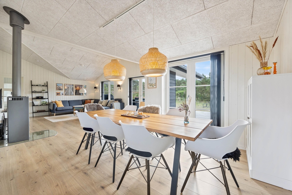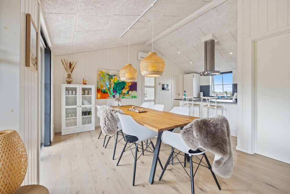 Helle Decken, Böden und Wände, ergänzt durch eine moderne und geschmackvolle Einrichtung sorgen für ein tolles Ambiente für euren Urlaub. Den Mittelpunkt dieses Hauses bildet der offene Wohn- und Essbereich.