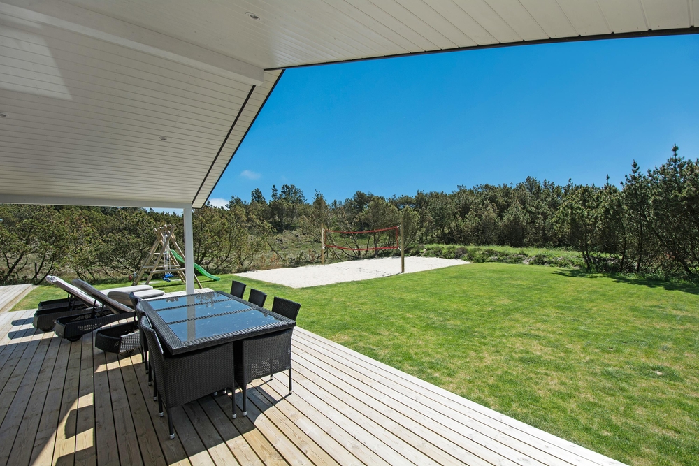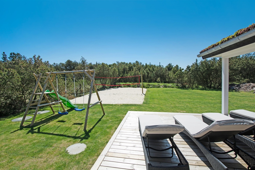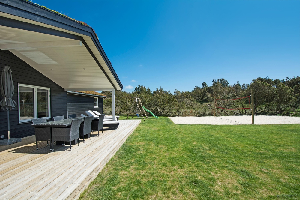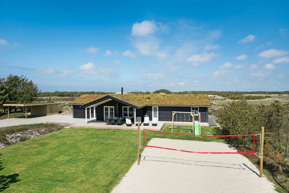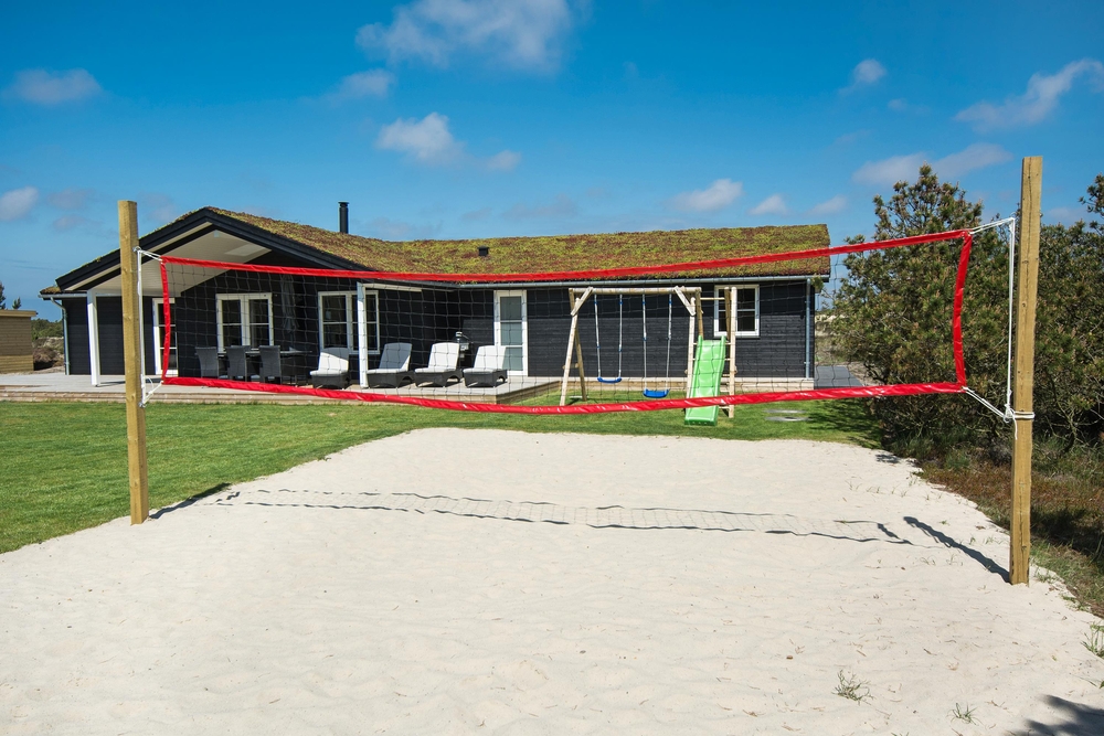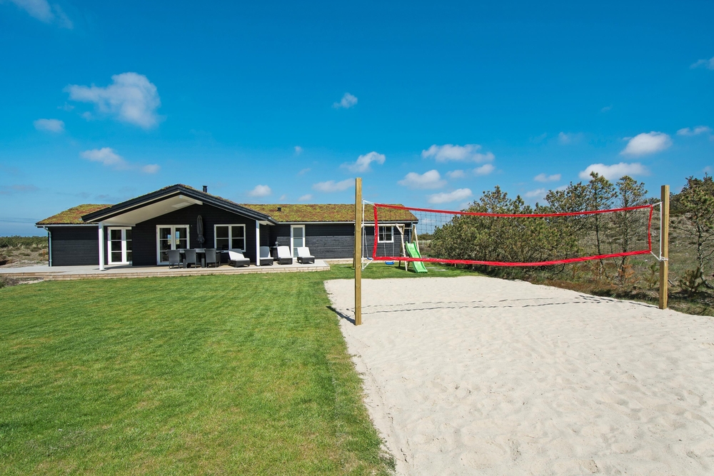 In Sackgassenlage liegt dieses Haus auf einem großzügigen Grundstück im Grünen. Wer sich am Strand noch nicht genügend ausgetobt hat, kann auf dem hauseigenen Volleyballfeld noch einmal Alles geben.