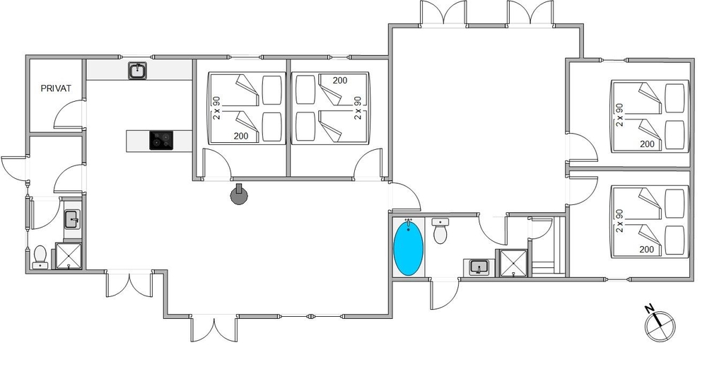 Helle und offene Räumen mit modernen Möbeln laden in diesem schönen Ferienhaus zu einem aktiven sowie auch erholsamen Urlaub ein. Es verfügt über 4 Schlafräume und 2 Bäder, einen großen Wohn- Essbereich, einen Aktivitätenraum und einem Außenbereich, der sich perfekt für diverse Outdooraktivitäten eignet. In diesem Haus wird es sicher niemandem langweilig.