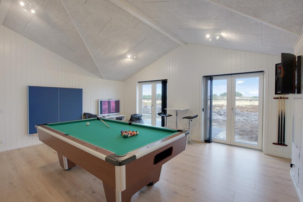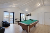 Seperat gibt es einen Aktivitätsraum mit Billardtisch, Dart und Spielekonsole. An grauen Tagen sind also nicht nur die Kinder beschäftigt. Je zwei Schlafräume und ein Bad gehen vom Wohnbereich und vom Spielzimmer ab.
