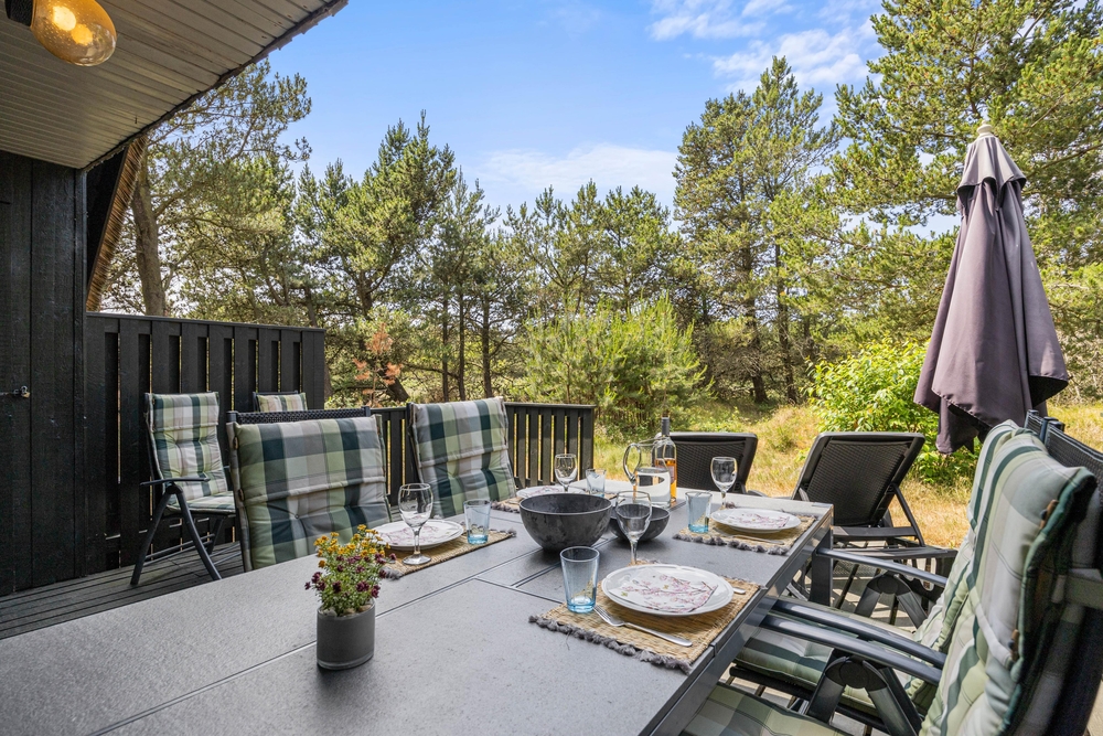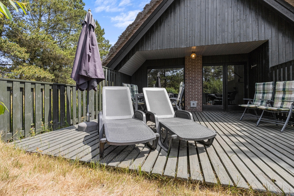 Die sonnigen, warmen Ferientage solltet Ihr auf der Terrasse des Ferienhauses im Hedetoftvej 44 genießen. Liegestühle und Gartenmöbel stehen für die Erholung an der frischen Luft bereit. Während Ihr Euch entspannt können die Kinder sich so richtig austoben, oder sich auf dem kleinen Spielturm mit Schaukel und Rutsche vergnügen.