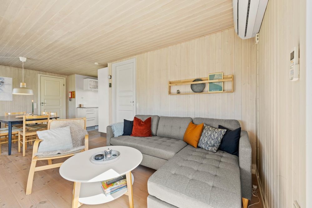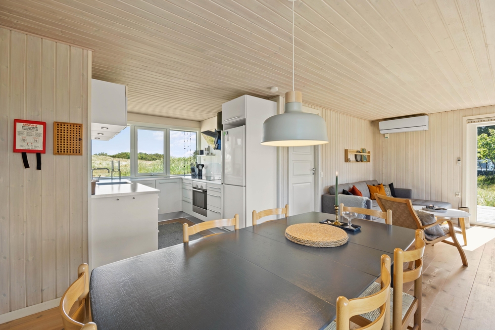 Zu einem Ferienhaus in Dänemark gehört einfach eine ?hyggelige? Ferienstimmung, und die bekommt Ihr bestimmt, wenn Ihr Euer Ferienhaus im Hedetoftvej 55 bezieht. Die helle, gemütliche Einrichtung, bei der ein Kaminofen natürlich nicht fehlen darf, geben diesem Haus ein schönes Wohlfühlambiente.