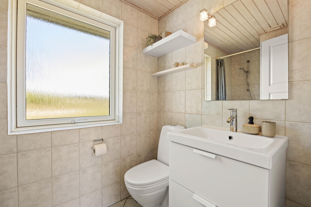 Das Badezimmer hat eine Fußbodenheizung. So bleiben die Füße in den kälteren Jahreszeiten morgens schön warm.