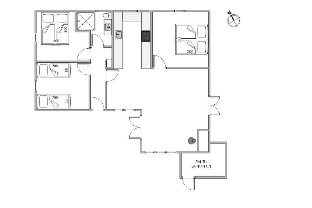 Das Ferienhaus hat insgesamt drei Schlafzimmer, wovon zwei mit Doppelbetten ausgestattet sind und eines mit zwei Einzelbetten. Umgeben von der Ruhe der Natur, findet Ihr bestimmt in einen erholsamen Ferienschlaf.