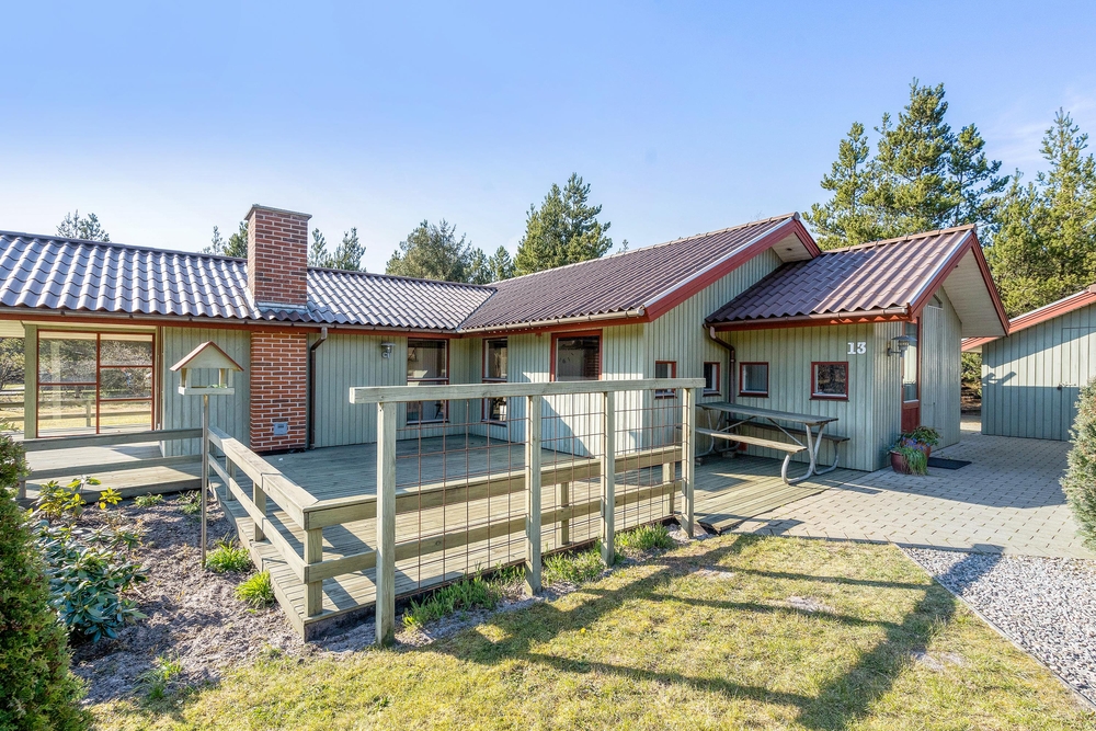 Dieses schöne Holzhaus im Hedevang 13 verbindet den klassischen Ferienhausstil mit einer modernen Einrichtung, wo keine Wünsche offenbleiben. Insgesamt 6 Personen finden in dem Ferienhaus Platz, wo es neben den praktischen Ausstattungen im Haus auch eine große Terrasse rund um das Haus gibt, welches auf einem großen grünen Grundstück liegt. Ideal also für Familien oder Freunde.
