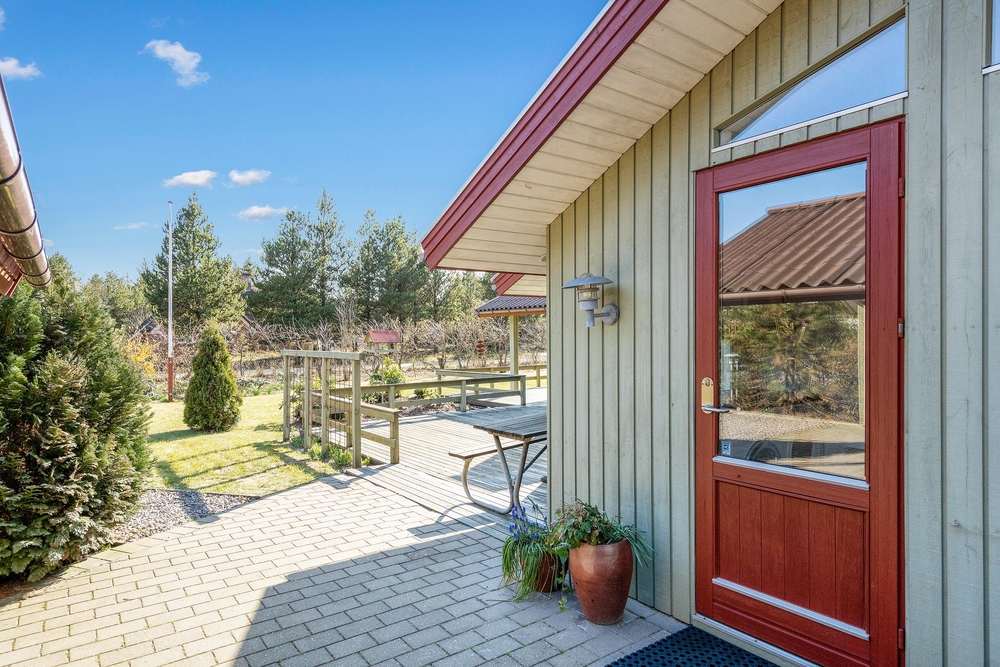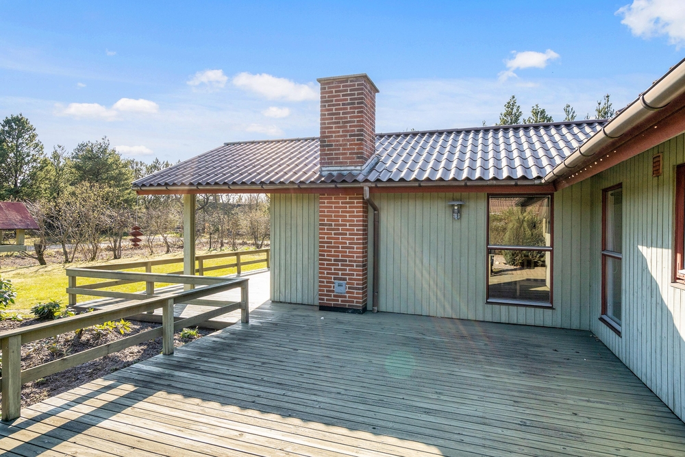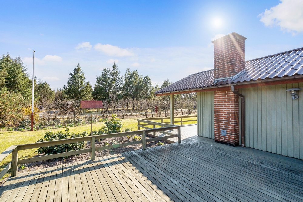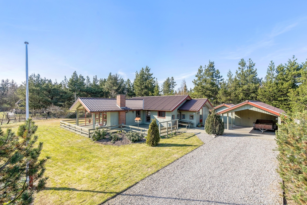 Das Ferienhaus liegt mit seiner großen Terrasse auf einem großen Naturgrundstück, welches sicherlich die kleineren Urlauber freuen wird. Hier habt ihr viel Platz zum Ballspielen, während der Rest der Familie auf der großzügigen Terrasse auf den Gartenmöbeln Platz findet. Der Grill lädt zu entspannten Abenden ein, wo ihr zusammen im Freien das Abendessen zubereiten könnt. Zusätzlich stehen eure Autos geschützt unter dem Carport direkt neben dem Ferienhaus.