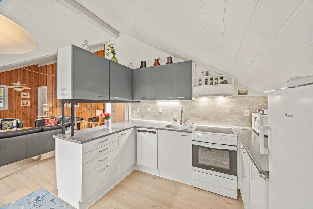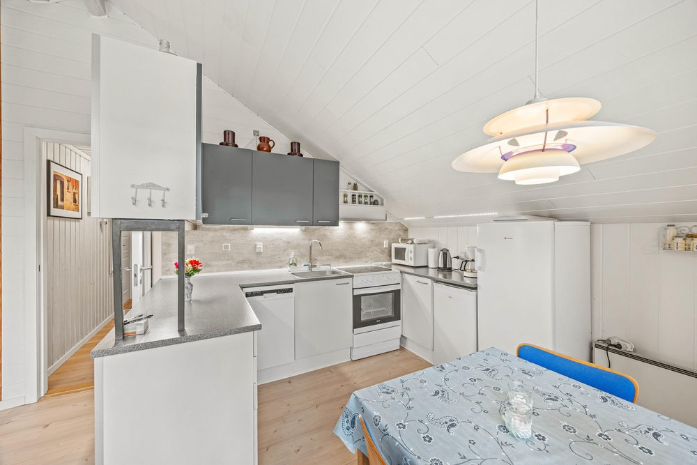 Dieses charmante Ferienhaus im Hedevang 57 vereint Komfort und Funktionalität. Das Herzstück ist der offene Wohnbereich, in dem Essbereich und Wohnzimmer harmonisch miteinander verbunden sind. Die gut ausgestattete Küche mit Geschirrspüler, Mikrowelle und Gefrierschrank lädt zu kulinarischen Genüssen ein. Nach einem gemeinsamen Abendessen könnt ihr euch gemütlich auf die Couch setzen, um zu entspannen, ein Buch zu lesen oder Pläne für den nächsten Urlaubstag zu schmieden. Der Kaminofen sorgt dabei für wohlige Wärme und eine gemütliche Atmosphäre.