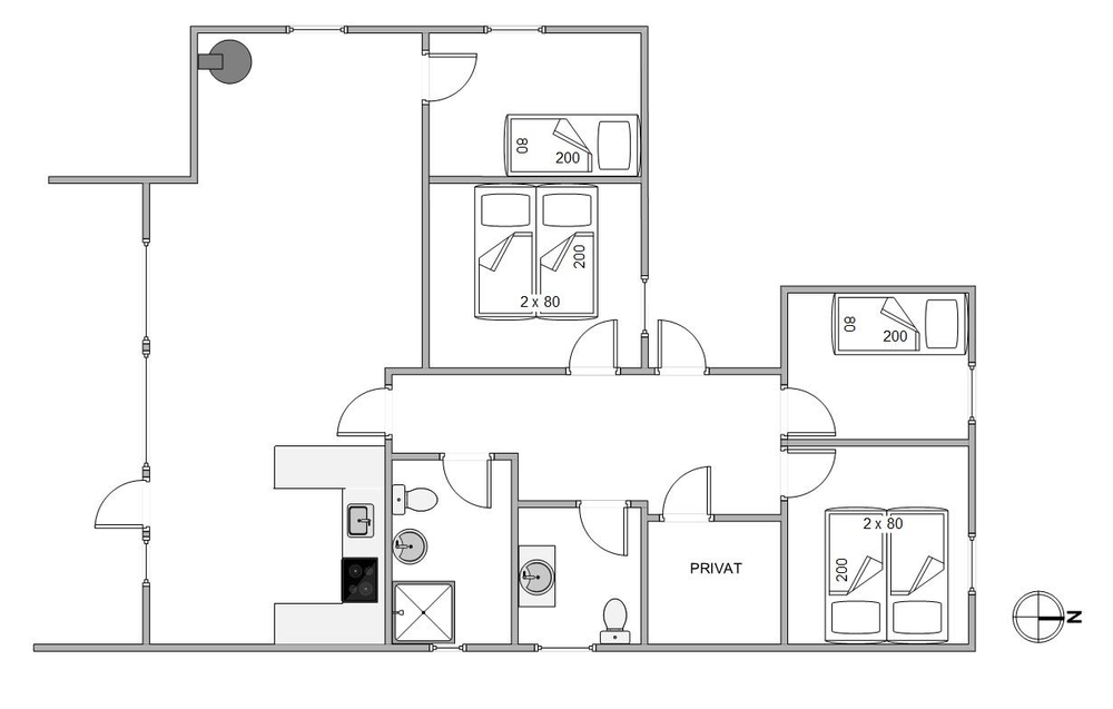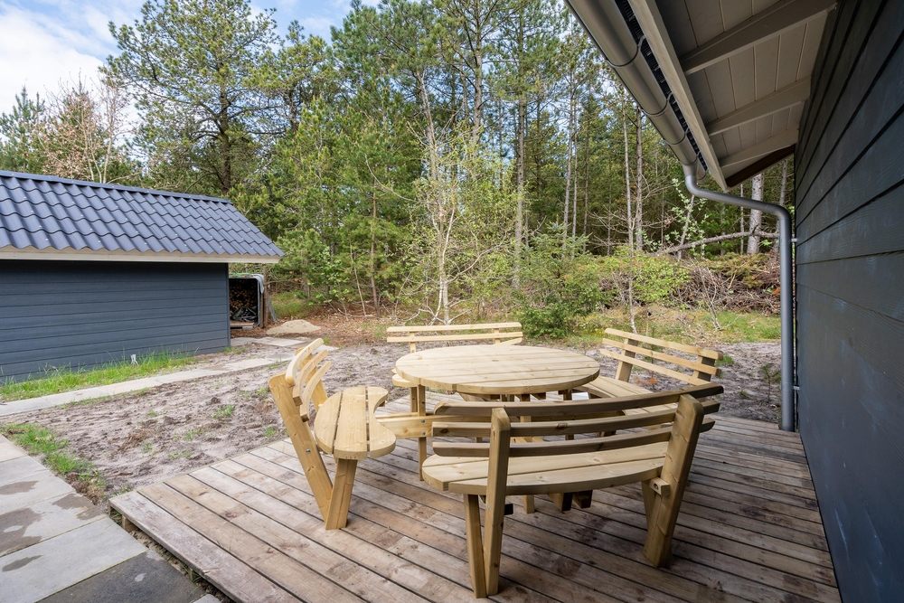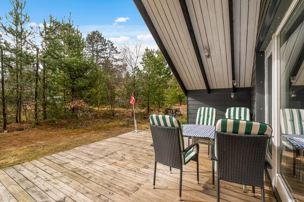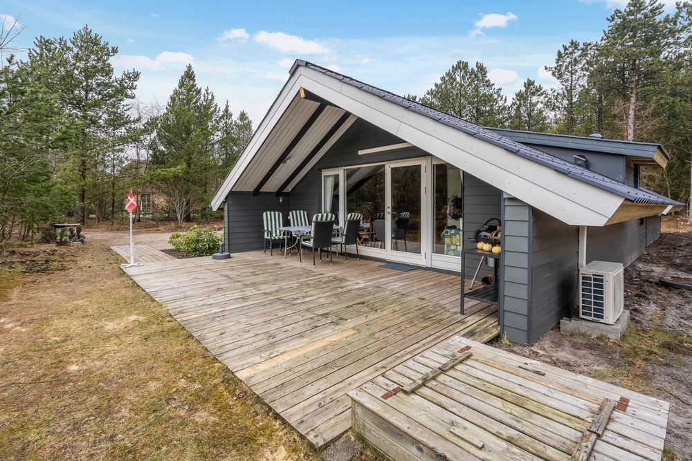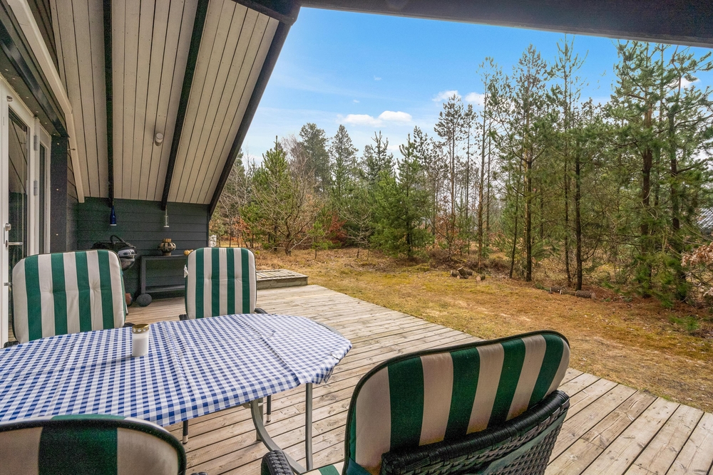 Dieses Ferienhaus in Houstrup bietet eine großzügige Holzterrasse, die einen herrlichen Blick auf die umgebende Natur ermöglicht. Der Garten, umsäumt von hohen Kiefern, schafft eine private und ruhige Atmosphäre, in der sowohl Kinder als auch Hunde viel Platz zum Spielen und für allerlei Aktivitäten haben. Ob ihr den Tag entspannt bei einem Frühstück auf der sonnigen Terrasse beginnt oder die Umgebung für ausgiebige Spaziergänge und Fahrradtouren entdeckt, hier findet ihr die perfekte Balance zwischen Erholung und Abenteuer.
