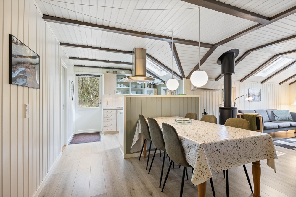 Nach einem erholsamen Ferientag, den ihr zum Beispiel am vier Kilometer entfernten Houstruper Sandstrand verbracht habt, bietet der große Wohn- und Essbereich einen perfekten Ort, an dem ihr abends die Füße hochlegen und die vergangenen Tage revuepassieren lassen könnt.