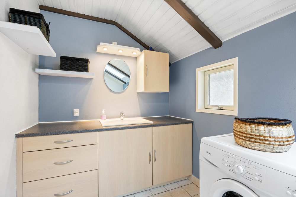 In der Küche findet ihr neben einer Kochmöglichkeit auch eine Spülmaschine, Gefrierschrank und eine Mikrowelle. Außerdem verfügt das Haus auch über eine Waschmaschine, so müsst ihr euch im Urlaub um nichts Gedanken machen.