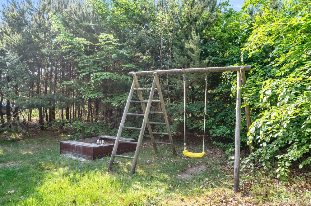 Rund um das Haus haben die kleinen Bewohner, die Möglichkeit im umliegenden Waldgebiet oder auf der Rasenfläche zu spielen. Hier gibt es genug Platz um Ballzuspielen oder der Tag auf der Schaukel oder im Sandkasten zu verbringen.