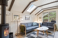 Das urige Ferienhaus bietet alles was das Urlaubsherz begehrt, hier findet man neben der typisch dänischen Einrichtung auch einen Kaminofen, inmitten des großen Wohnbereiches. Hier könnt ihr euch an kalten Tagen aufwärmen, oder abends beim Knistern der Holzkohle und einem Glas Rotwein die kommenden Urlaubstage planen.