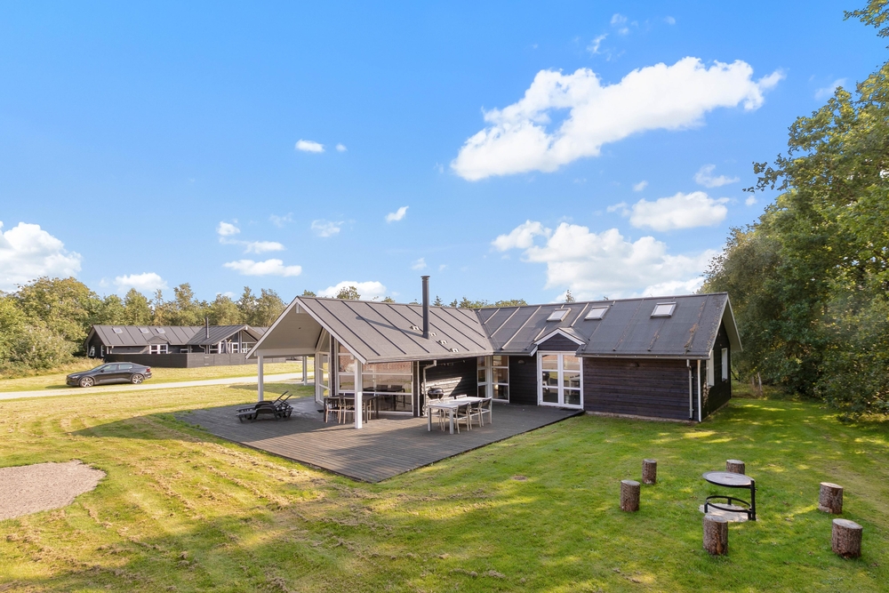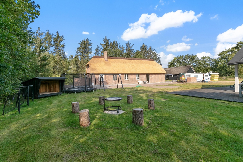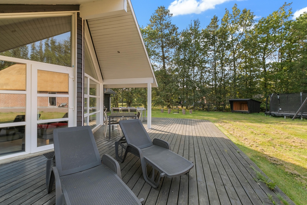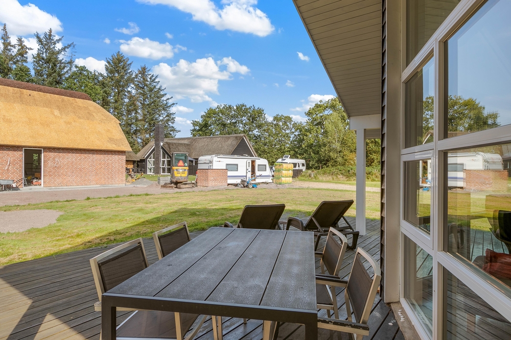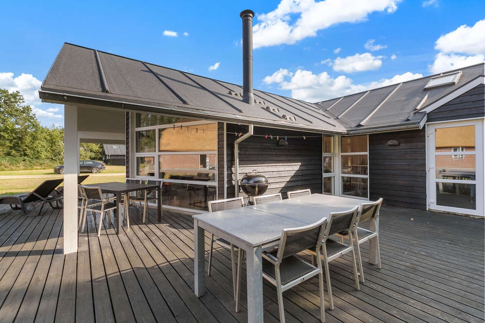 Der Außenbereich des Ferienhauses in Houstrup ist ein echtes Paradies für alle, die gerne draußen sind und die Natur genießen.