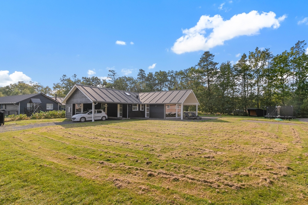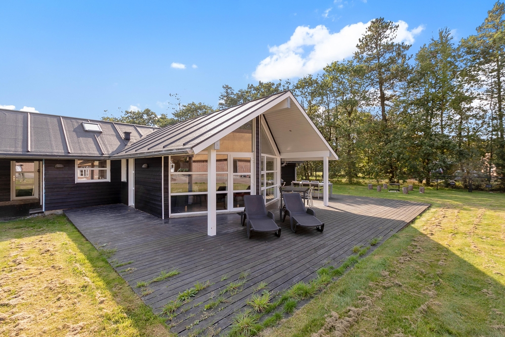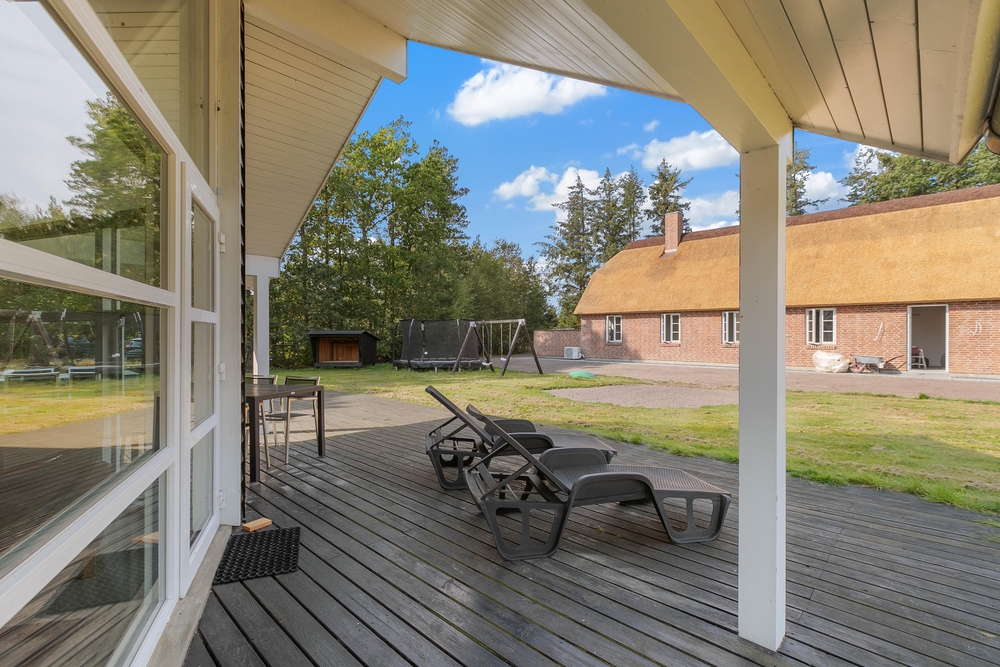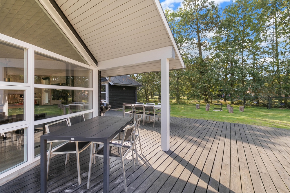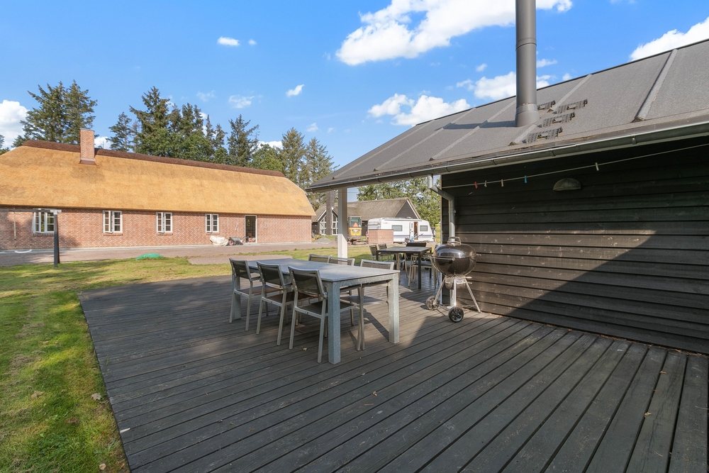 Der Außenbereich des Ferienhauses in Houstrup ist ein echtes Paradies für alle, die gerne draußen sind und die Natur genießen.