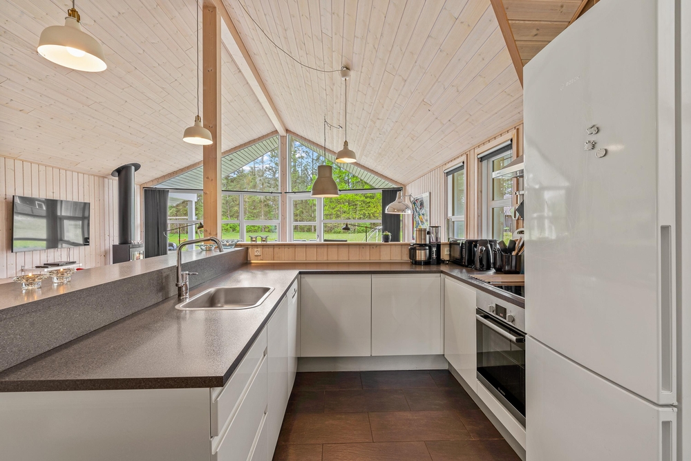 Die Küche ist modern eingerichtet und lässt keine Wünsche offen. Mit modernen Annehmlichkeiten wie einer Spülmaschine wird das Kochen hier zum Vergnügen ? und der Abwasch bleibt ganz einfach aus. Direkt daneben befindet sich der offene Essbereich, der sich hervorragend für gesellige Mahlzeiten und unvergessliche Abende eignet. Das Ferienhaus bietet 4 Schlafzimmer mit Doppelbetten sowie 2 zusätzliche Schlafplätze im Dachgeschoss.