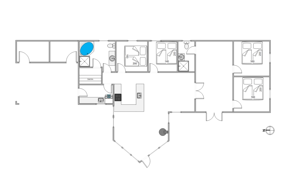 Die Küche ist modern eingerichtet und lässt keine Wünsche offen. Mit modernen Annehmlichkeiten wie einer Spülmaschine wird das Kochen hier zum Vergnügen und der Abwasch bleibt ganz einfach aus. Direkt daneben befindet sich der offene Essbereich, der sich hervorragend für gesellige Mahlzeiten und unvergessliche Abende eignet. Das Ferienhaus bietet 4 Schlafzimmer mit Doppelbetten sowie 2 zusätzliche Schlafplätze im Dachgeschoss.