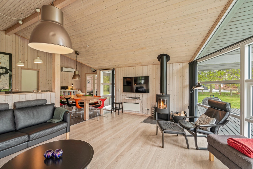 Mit einer großzügigen Wohnfläche von 126 qm bietet das Ferienhaus im Hedevang 75B viel Platz für Freundesgruppen oder Familien, um einen entspannten Aufenthalt zu genießen. Der Wohnbereich ist mit einem gemütlichen Kaminofen ausgestattet, der an kühleren Abenden für wohltuende Wärme sorgt und eine besonders gemütliche Atmosphäre schafft.