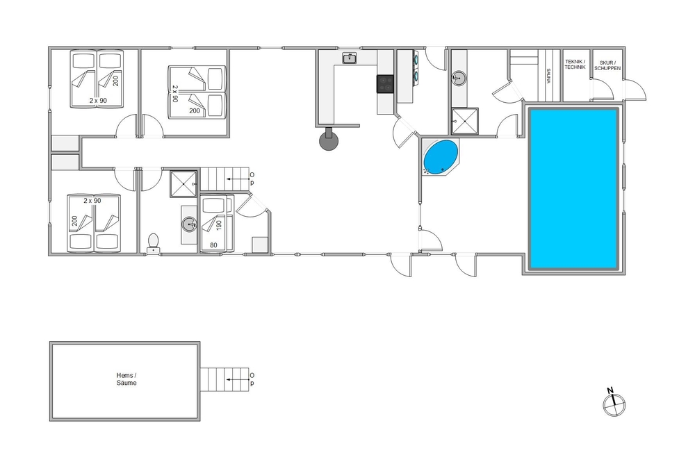 Auf Hedevang 8 habt ihr ein 17m² grossen Swimmingpool, wo die Kinder richtig rumplantschen können. Den Whirlpool findet ihr auch im Pool Raum, hier könnt ihr euch durch leichter Luftmassage, die Muskeln im Körper durch massieren lassen. Und reicht das alles nicht, dann habt Ihr die Möglichkeit euch in der Sauna zu entspannen, und so richtig vom Alltagsstress runterzukommen.