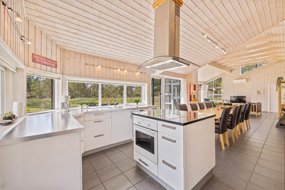 Das Ferienhaus ist hell und einladend eingerichtet, und im Wohnzimmer gibt es einen fantastischen Lichteinfall durch die großen Fenster zur Terrasse. Im Wohnzimmer steht ein Kamin, der nicht nur Wärme, sondern auch eine besonders gemütliche Urlaubsatmosphäre verbreitet. Macht es euch auf dem Sofa gemütlich und veranstaltet einen gemeinsamen Filmeabend. Des Weiteren gibt es in jedem Schlafzimmer einen Fernseher, so dass ihr euch auch mal zurückziehen könnt.