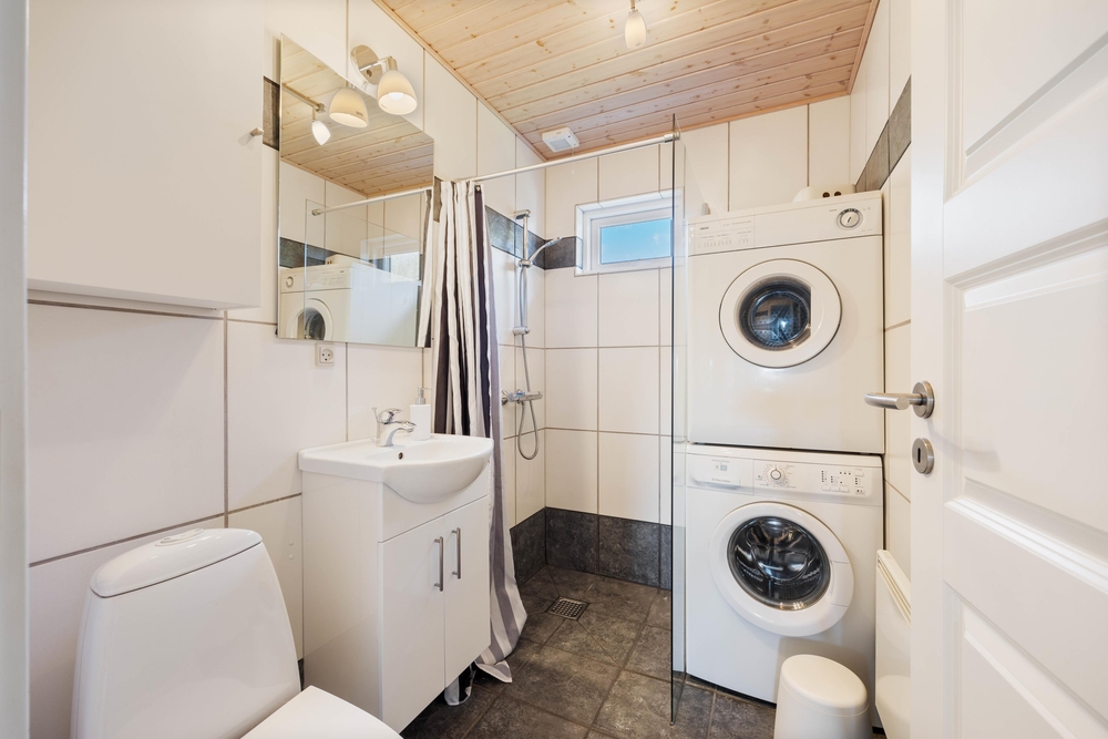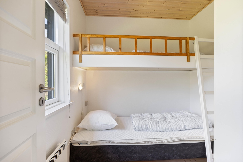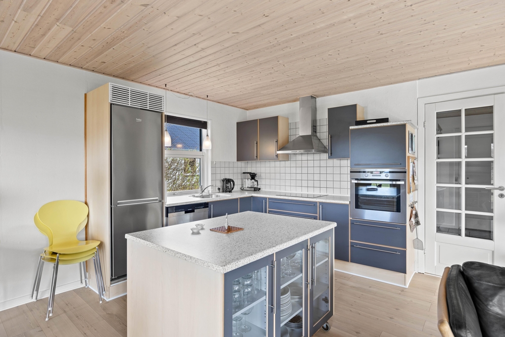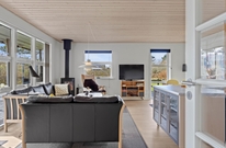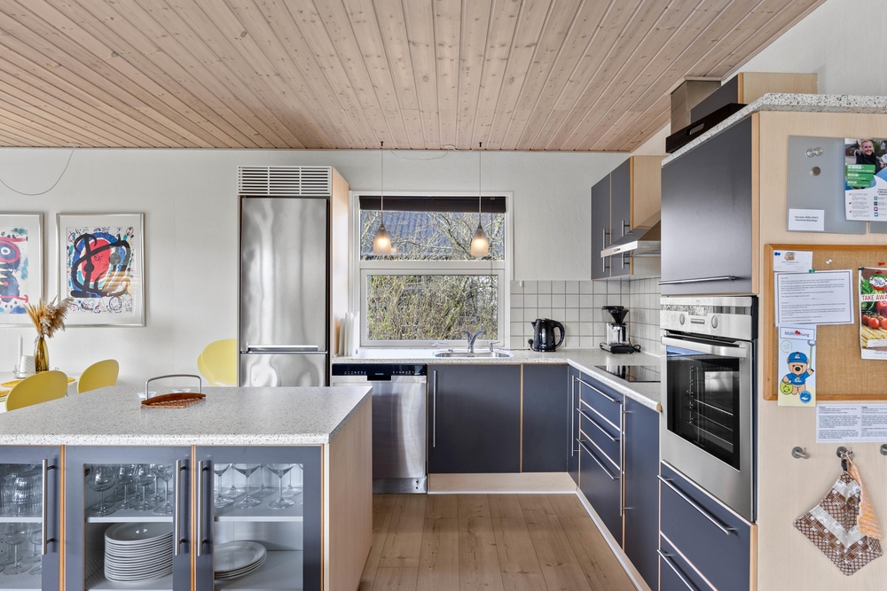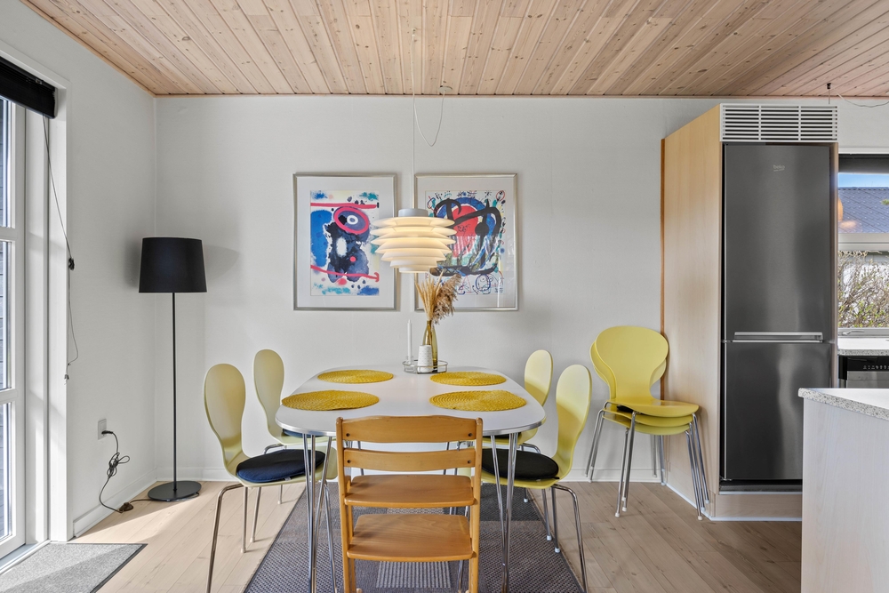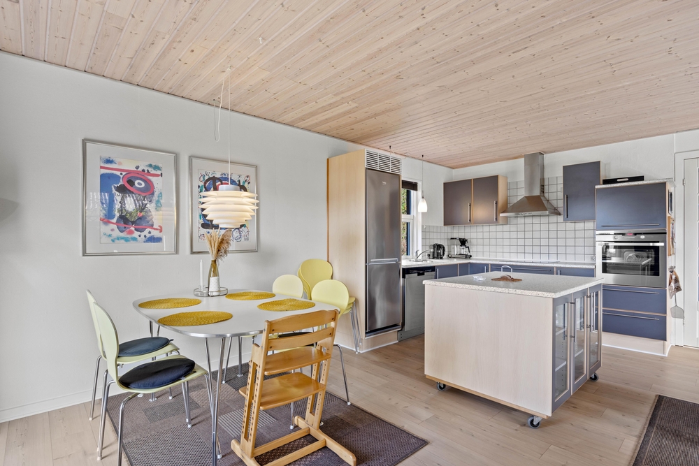 Im Heidesvej 10 empfängt euch das helle und freundliche Interieur des Ferienhauses, sobald ihre es betretet. Die großen Fenster und Glastüren mit Zugang zur Terrasse, sorgen für viel natürliches Licht im Wohnbereich. Hier können ihr es euch auf dem Sofa gemütlich machen und die Wärme des Holzofens genießen, während ihr es euch mit einer Tasse heißer Schokolade gemütlich macht. Eine energiesparende Wärmepumpe hilft, den Verbrauch für Wärme niedrig zu halten.