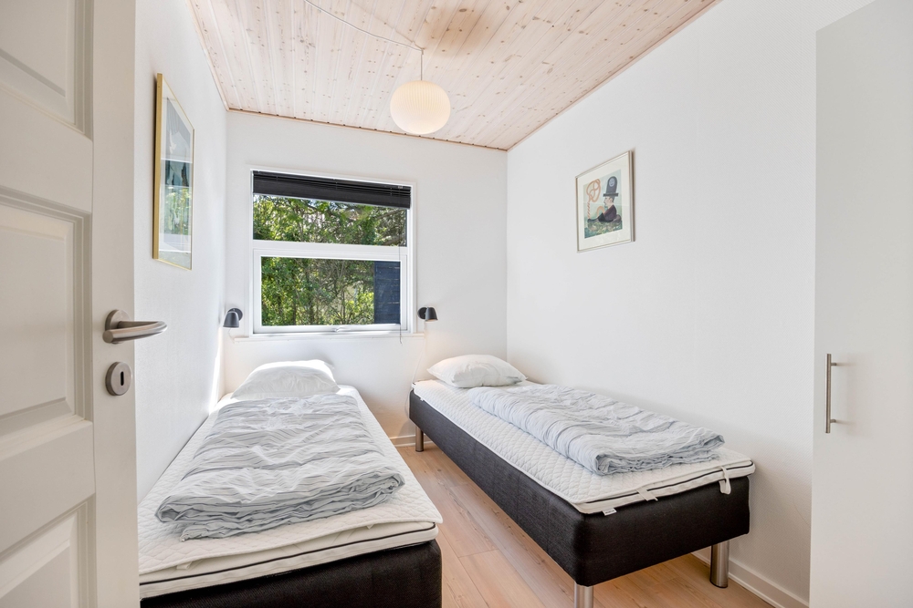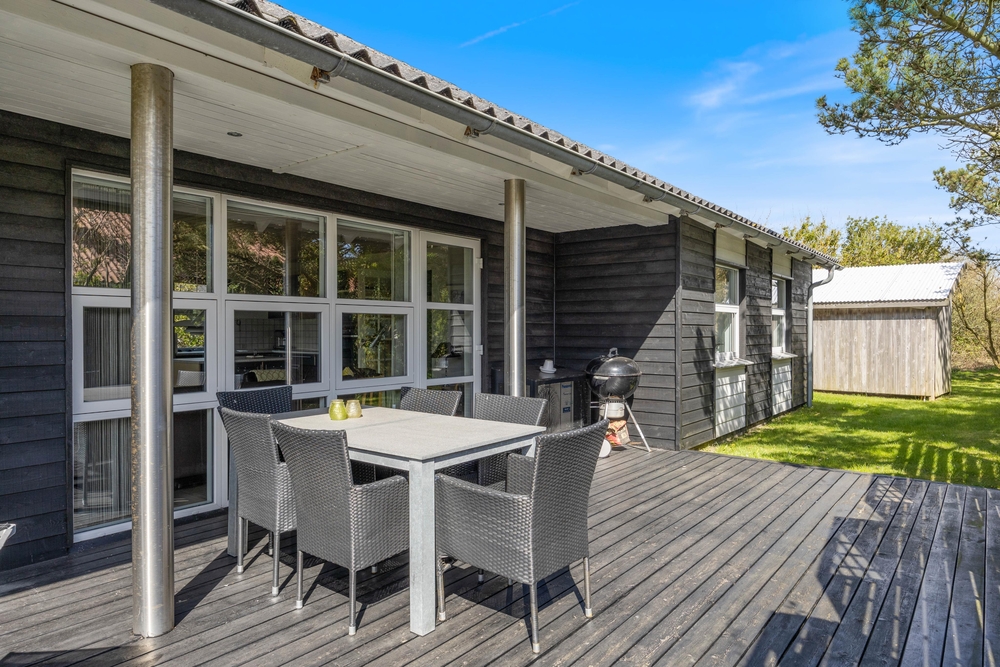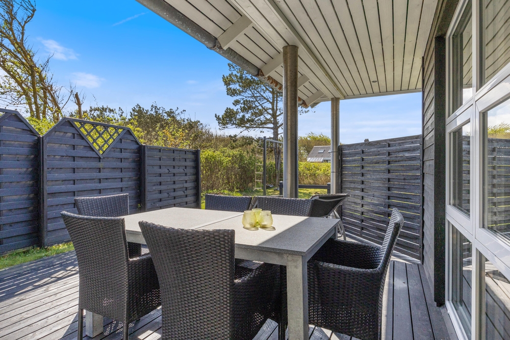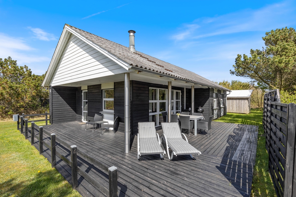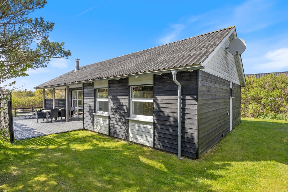 Wenn ihr ein gemütliches und gut gepflegtes Ferienhaus für bis zu sechs Personen in Bjerregård sucht, ist dieses Sommerhus im Heidesvej 10 eine gute Wahl. Das Ferienhaus liegt auf einem idyllischen Naturgrundstück, das von Bäumen und Büschen abgeschirmt ist und somit Privatsphäre bietet. Die große Terrasse ist sowohl abgeschirmt als auch teilweise überdacht, so dass es viele Möglichkeiten für Sonne, Schatten und Schutz gibt.