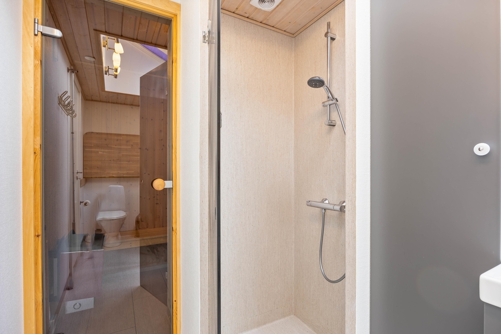 Abends könnt ihr euch dann auf die 3 Schlafzimmer des Ferienhauses verteilen, die mit einem Etagenbett, und 2 zusammengeschobenen Einzelbetten ausgestattet sind, um eure Batterien wiederaufzuladen. Damit es keinen Stau vor dem Badezimmer gibt, gibt es neben dem Badezimmer auch eine Gästetoilette. Für die Extraportion Entspannung in eurem Urlaub sorgt die hauseigene Sauna. Um in der kühleren Jahreszeit keine kalten Füße zu bekommen, hat das Badezimmer eine Fußbodenheizung