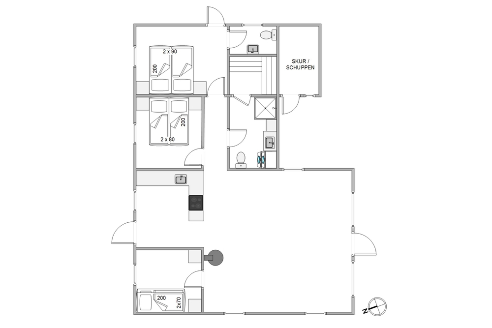 Das Ferienhaus im Helmklitvej 210 in Fjand liegt auf einem 1886m2 großem Rasengrundstück, welches euren Kindern und Hunden genügend Platz zum Spielen und Toben bietet. Besonders die Schaukel im Garten wird sicher ein Hit für eure Kinder sein. Während die Kinder Ball spielen, könnt ihr es euch auf der teilweise überdachten und abgeschirmten Terrasse gemütlich machen oder alles für einen gemütlichen Grillabend vorbereiten.