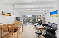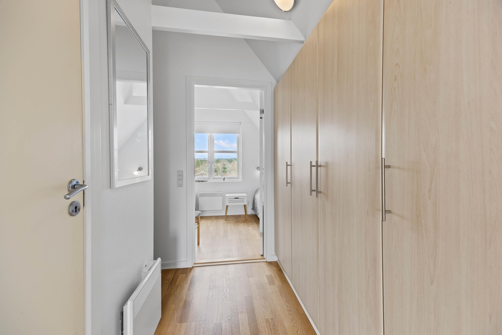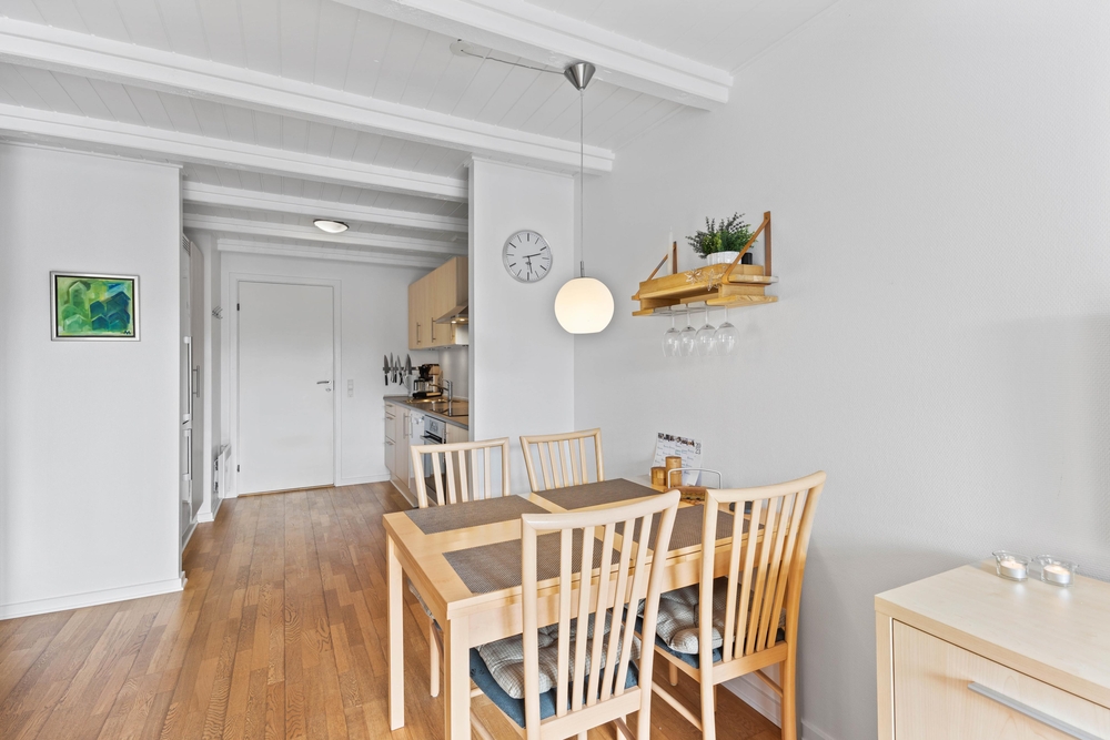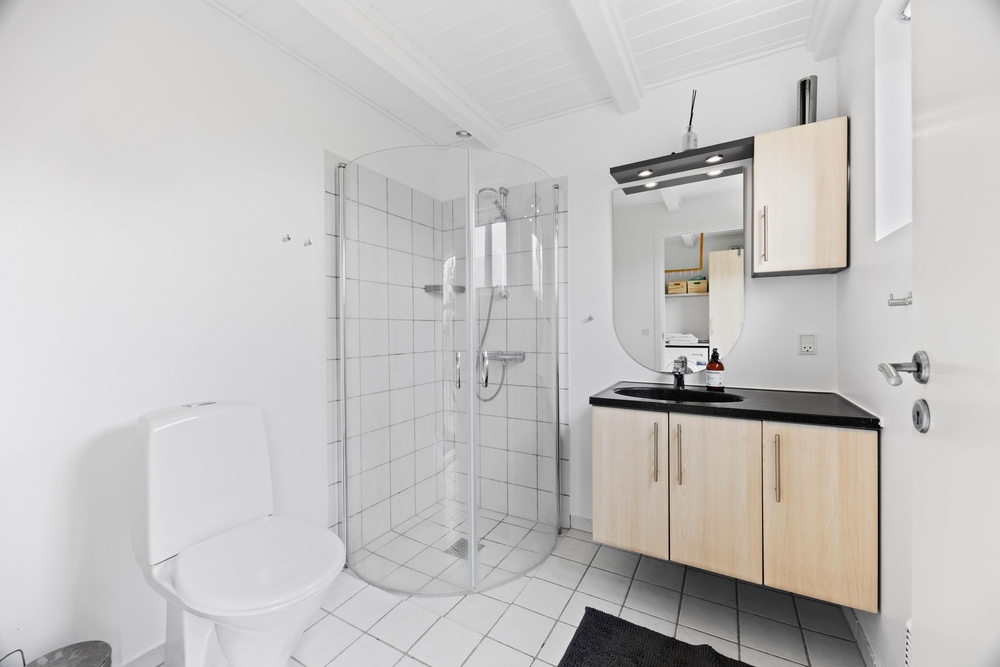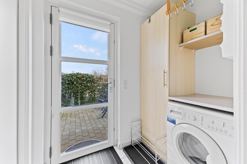 Die 2-stöckige Ferienwohnung im Hennebysvej 32Q bietet im Erdgeschoss einen kleinen Hauswirtschaftsraum mit Waschmaschine, ein Bad mit Fußbodenheizung und nicht zuletzt die Küche, die offen zum Wohnbereich liegt. In der praktisch ausgestatteten Küche könnt ihr leckere Mahlzeiten zubereiten, die ihr am Essplatz oder Draußen in der Sonne genießen könnt.