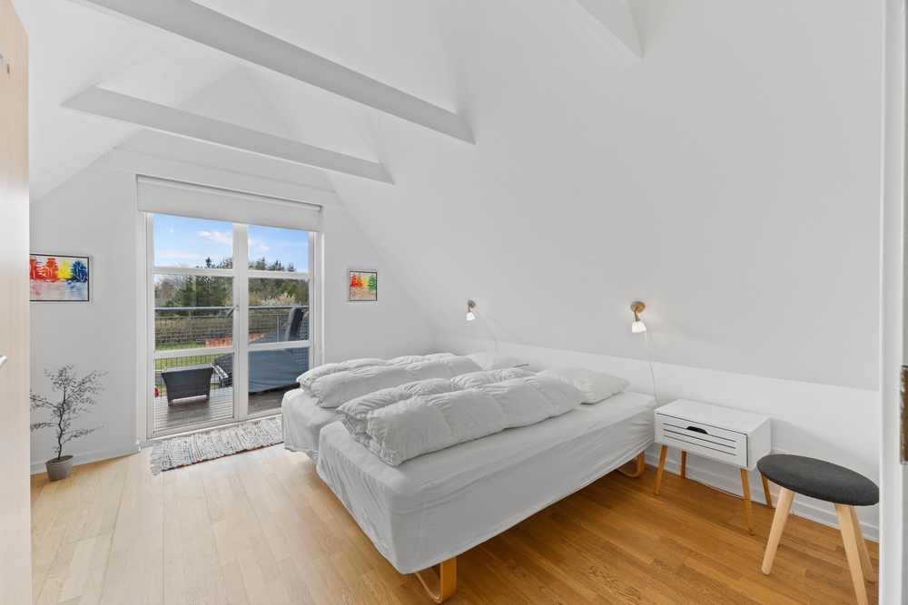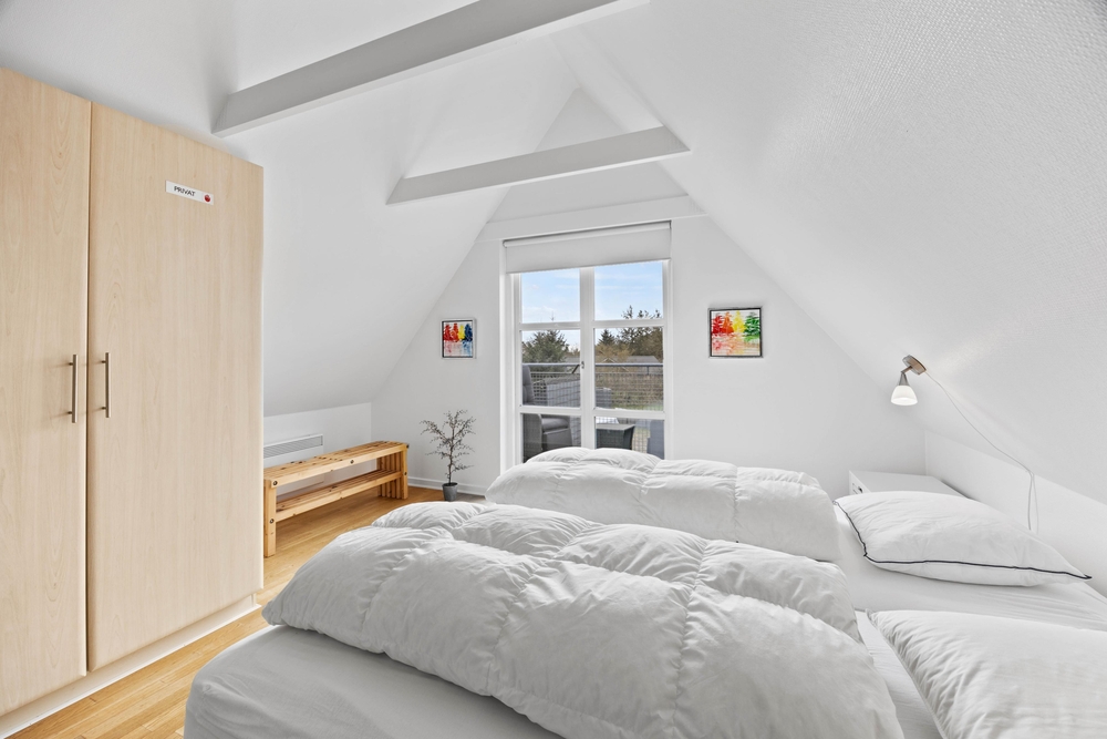 Auf der linken Seite befindet sich das Schlafzimmer mit 2 bequemen Einzelbetten und auf der rechten Seite befindet sich das zweite Zimmer mit einem Doppelbett. Dieses Zimmer bietet auch den Zugang zum schönen Balkon, auf dem ihr entspannte Stunden in den guten Terrassenmöbeln verbringen könnt. Dank der energiesparenden Wärmepumpe könnt ihr die Ferienwohnung schnell und kostengünstig aufwärmen.