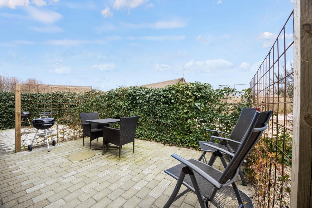Hier könnt ihr in geselliger Runde grillen mit guten Steaks und gegrillten Maiskolben oder auch frischen Fisch. Auf der Rückseite des Hauses findet ihr eine weitere offene Terrasse, von der aus man ebenfalls die Sonne genießen kann. Durch die verschiedenen Bereiche habt ihr so die Möglichkeit, mehrere Stunden am Tag die Sonnenstrahlen zu genießen.