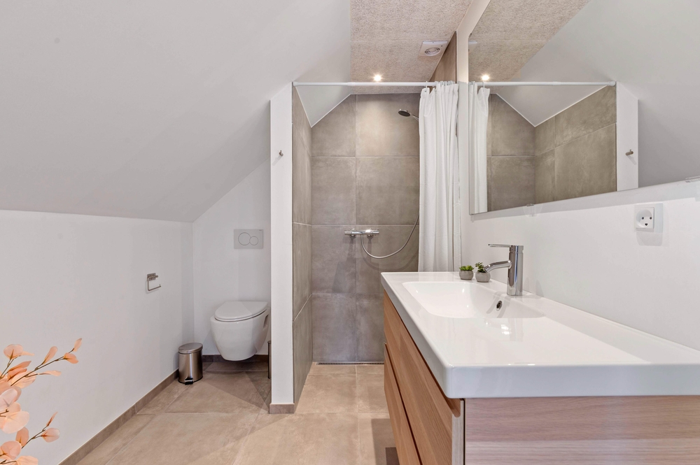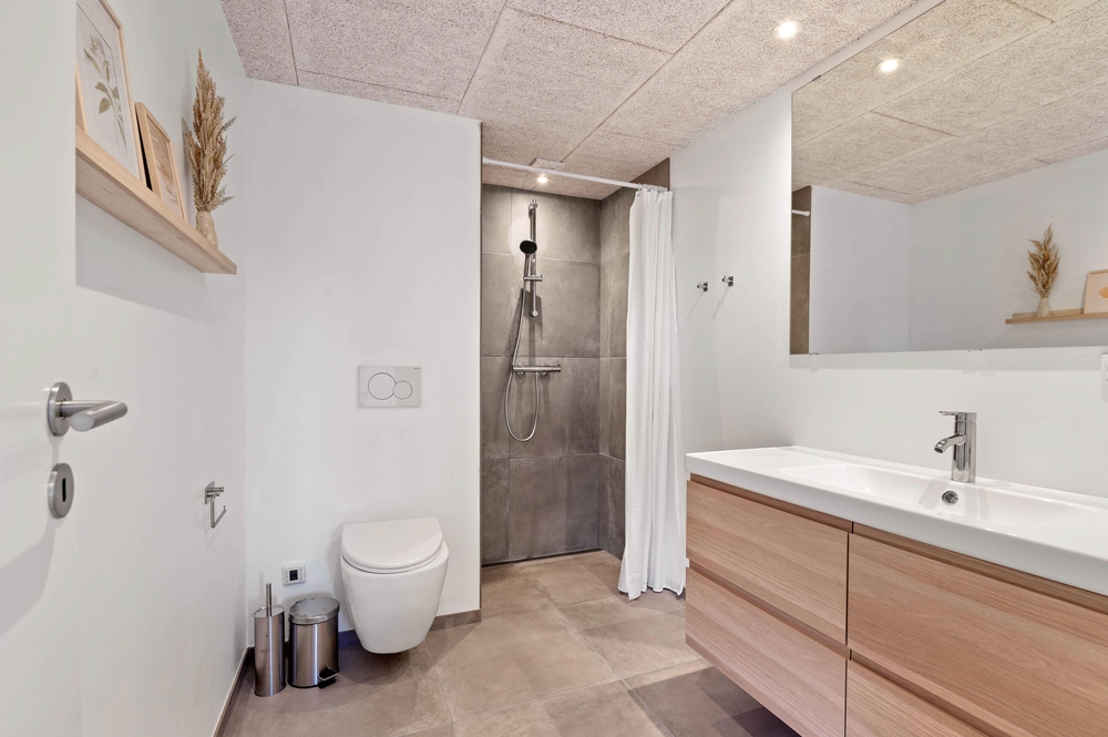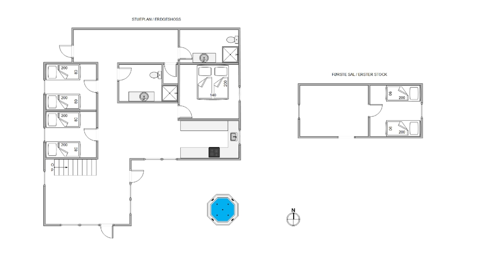 Bereits beim Betreten eures Ferienhauses könnt ihr euch wie daheim fühlen. Die moderne Ausstattung wie Flachbildfernseher (3 deutsche Programme), Bluetooth-Einheit und die energiesparende Wärmepumpe sorgen für ein angenehmes Ferienerlebnis. Praktisch sind zudem die zwei Badezimmer, welche mit Fußbodenheizung ausgestattet sind und lange Wartezeiten am Morgen vermeiden.