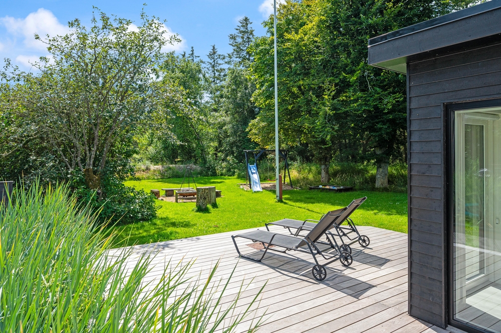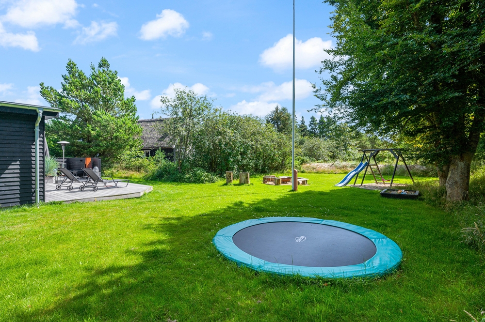 Für die Kids hat der Außenbereich vom Ferienhaus einiges zu bieten. Ein in den Boden eingelassenes Trampolin, einen Spielturm mit Rutsche, Schaukel und Sandkiste, und einen Platz zum Lagerfeuer machen. Auf der schönen geschützten Terrasse gibt es außerdem viele Möglichkeiten sich im Loungesessel, oder in den Liegestühlen zurück zu lehnen und die Ruhe zu genießen.