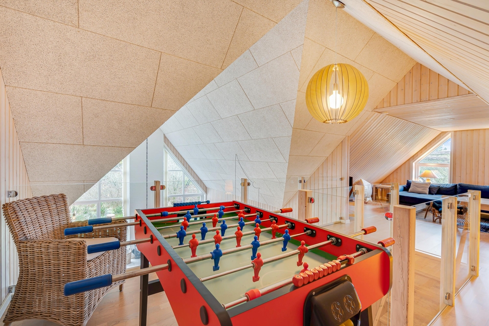 Die Räumlichkeiten erstrecken sich auf insgesamt zwei Ebenen ? im Obergeschoss gibt es ein zweites Wohnzimmer sowie ein Kickertisch für die Kinder.