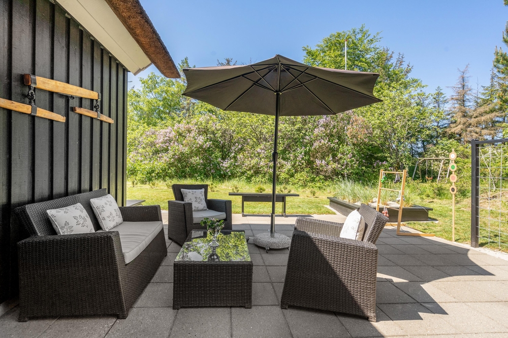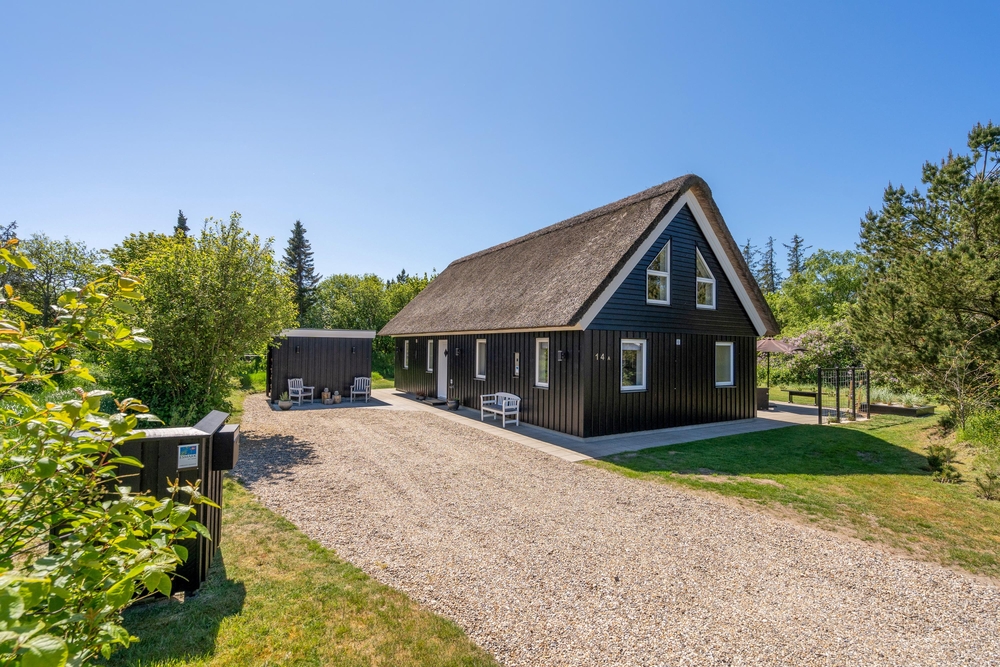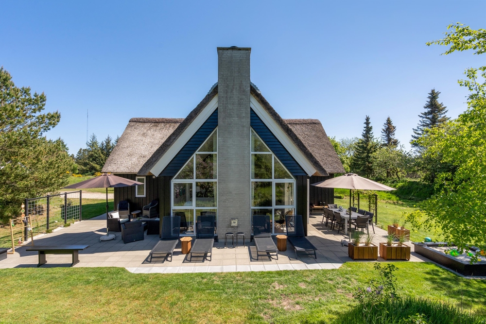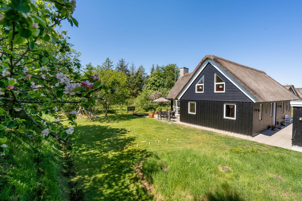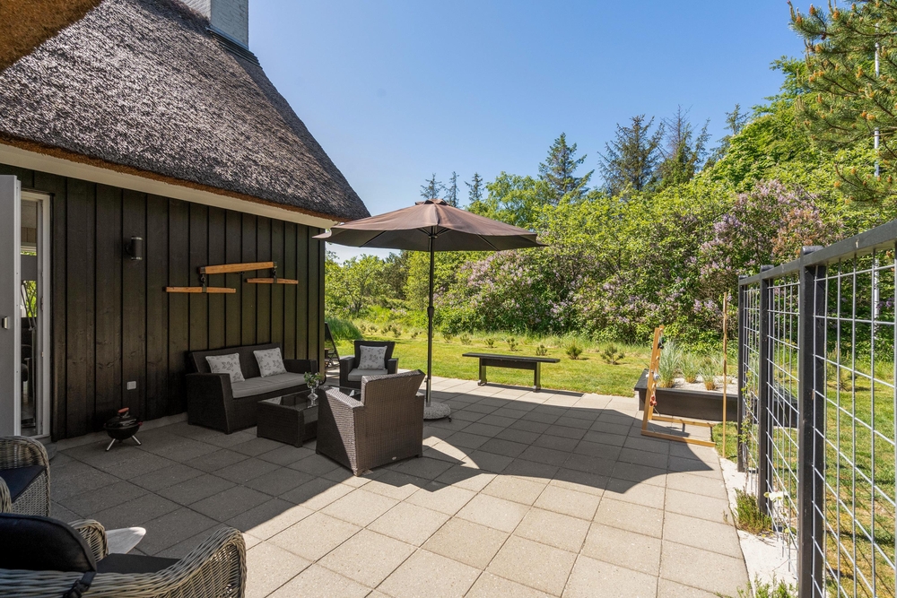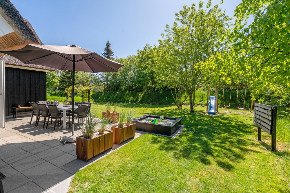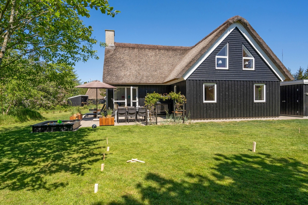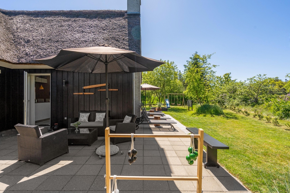 Am Ende einer Sackgasse, in dem populären Ferienort Blåvand, liegt dieses gemütliche reetgedeckte Ferienhaus mit platz für 8 Personen. Durch die zentrale Lage und dem grossen Grundstück mit Spielmöglichkeiten für die Kleinsten, ist dieses Haus der perfekte Rückzugsort für einen Familienurlaub. Damit ist aber noch nicht alles gesagt, denn das Ferienhaus bietet auch inwendig einges für die Famile, wie zum Beispiel: Sauna, Whirpool und Kicker.