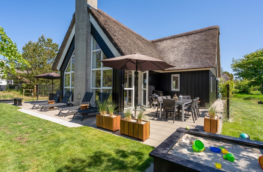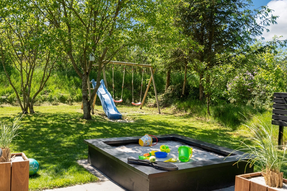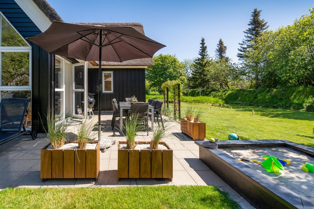 Rund um das Haus verläuft eine offene, aber befestigte Terrasse. Ihr könnt also einfach mit der Sonne wandern und es euch entsprechend auf den Gartenmöbeln gemütlich machen. Während die Kinder Spaß in der Sandkiste und beim Fangen- oder Versteckspielen auf dem großen Grundstück haben, lehnt ihr euch entspannt zurück, genießt die Sonnenstrahlen oder steckt die Nase mal wieder in ein spannendes Buch. Selbstverständlich gibt es auch einen Grill, sodass ihr euch leckere Mahlzeiten zubereiten und gleich draußen schmausen könnt.