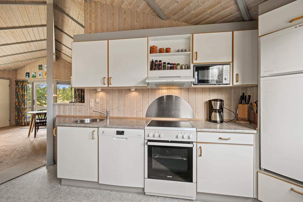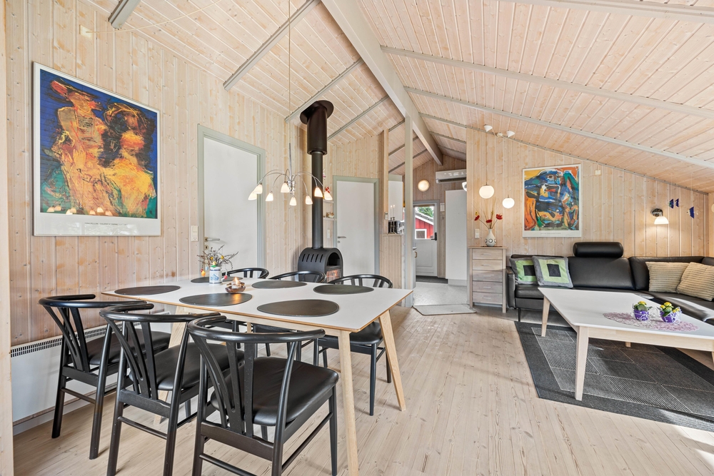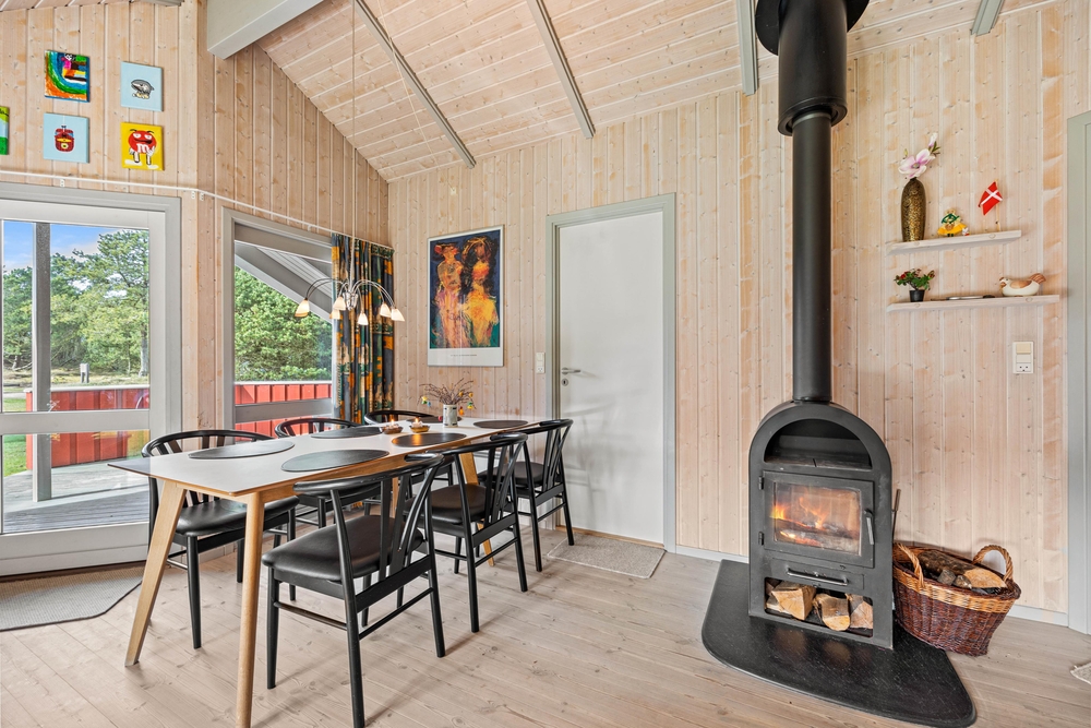 Der gesamte Innenbereich des Ferienhauses wurde mit viel Liebe zum Detail eingerichtet. Hier erwartet euch die typisch, dänische Gemütlichkeit. Im Wohnbereich mit offener Küche verbringt ihr gemeinsame Ferienstunden. Hier könnt ihr zusammen das Abendessen vorbereiten, euch am Tisch zu einem Spieleabend treffen, oder ihr genießt einfach mal die Ruhe mit einem knisternden Feuer im Kaminofen.