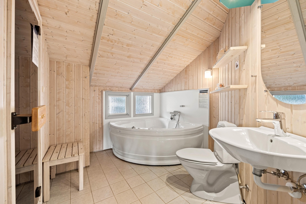 Das Badezimmer hat eine gute Grundausstattung, hier habt ihr alles, was ihr braucht ? plus das gewisse Extra mit Sauna und Whirlpool. Es gibt doch nichts Schöneres, als sich nach einem langen Spaziergang an einem stürmischen Herbsttag, in der vorgeheizten Sauna wieder aufzuwärmen.