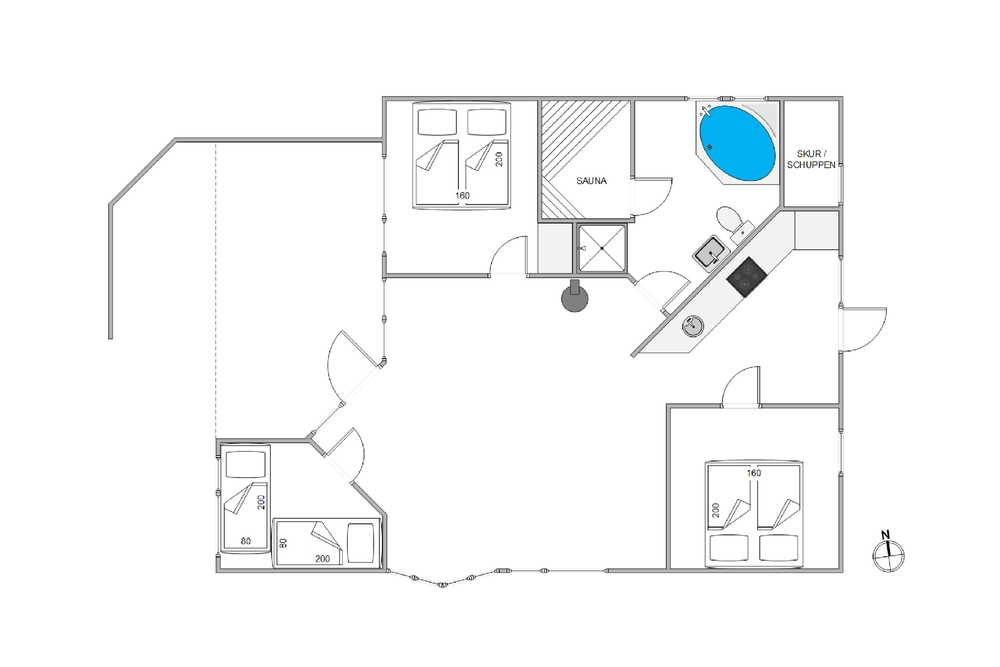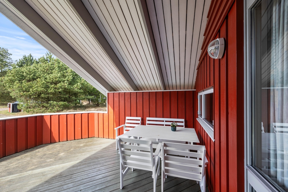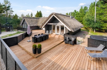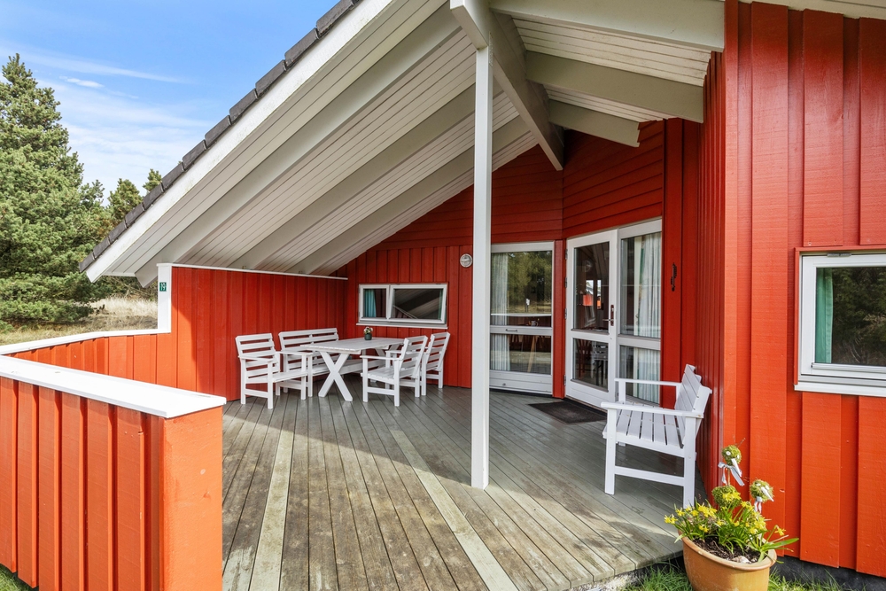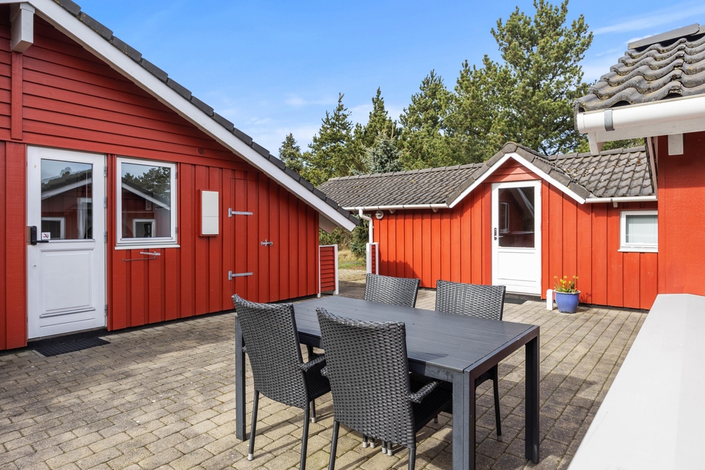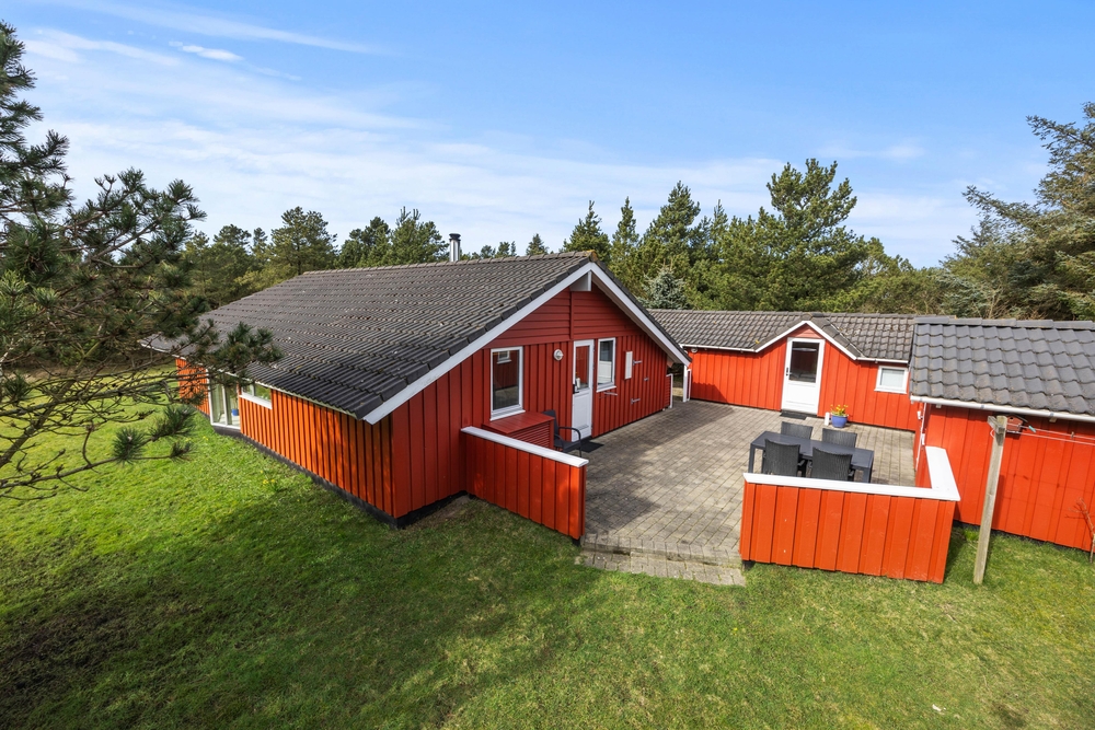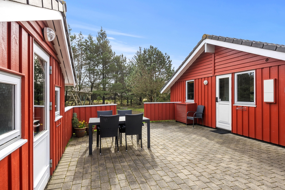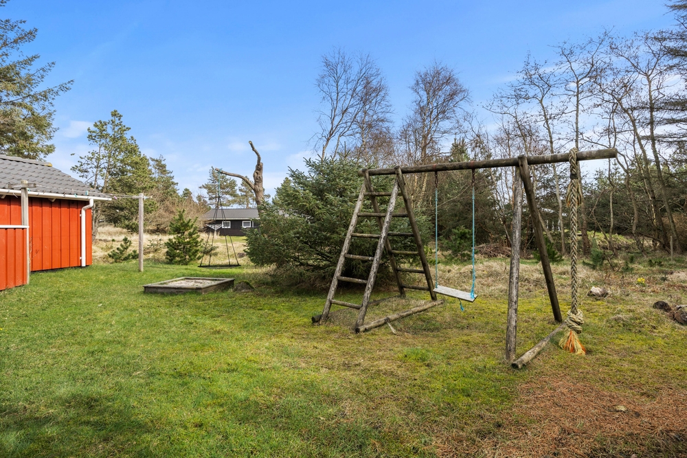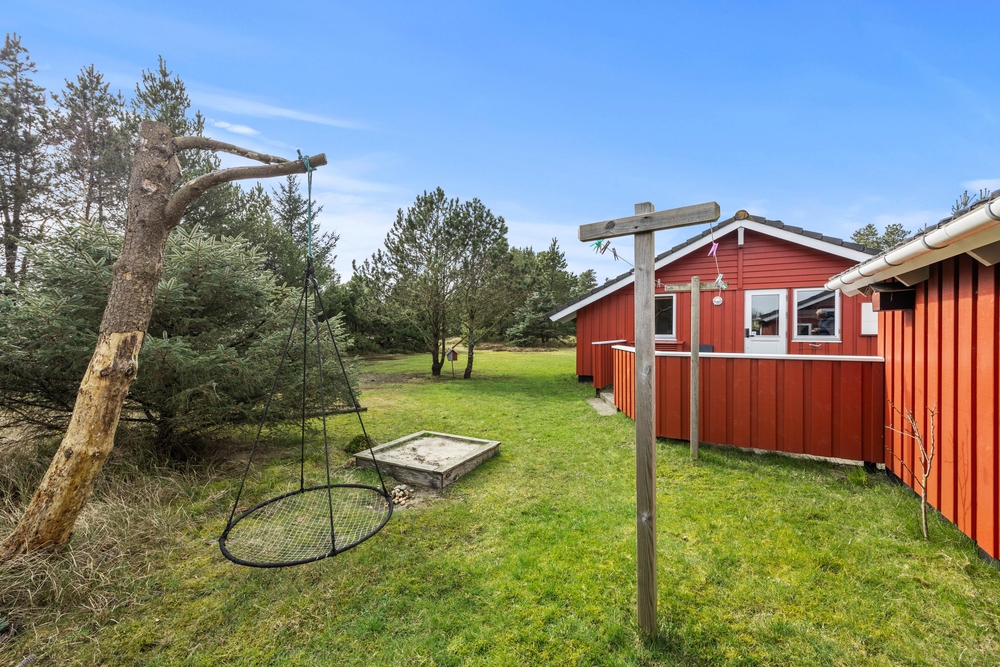 Das große Naturgrundstück, umgeben von Kiefern und Heidekraut, der typischen Natur der dänischen Westküste, liegt ruhig und geschützt, nur einen Katzensprung entfernt vom weitläufigen Naturschutzgebiet, der ?Kallesmærsk Hede?. Ihr habt zwei wunderschöne Terrassen zur Auswahl, so dass ihr immer ein Plätzchen in der Sonne findet. Morgens deckt ihr den Frühstückstisch auf der Terrasse in östlicher Ausrichtung, und am Abend trefft ihr euch zum Grillen auf der westlich ausgerichteten Terrasse. Für die Kinder gibt es draußen viel zu entdecken. Neben der spannenden Natur können sich die Kleinen auch beim Schaukeln oder in der Sandkiste vergnügen.
