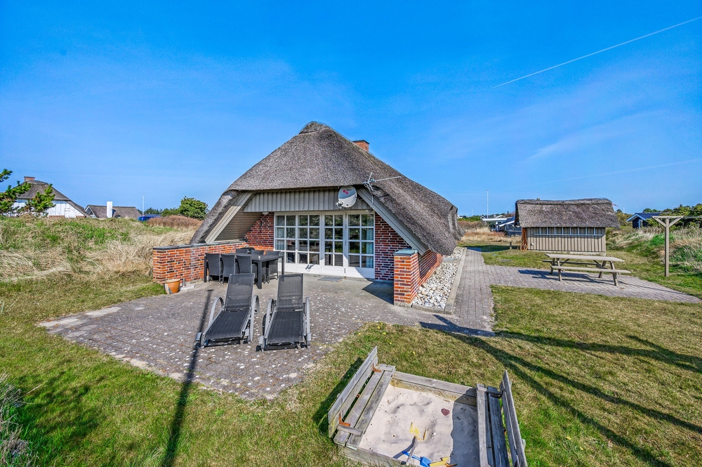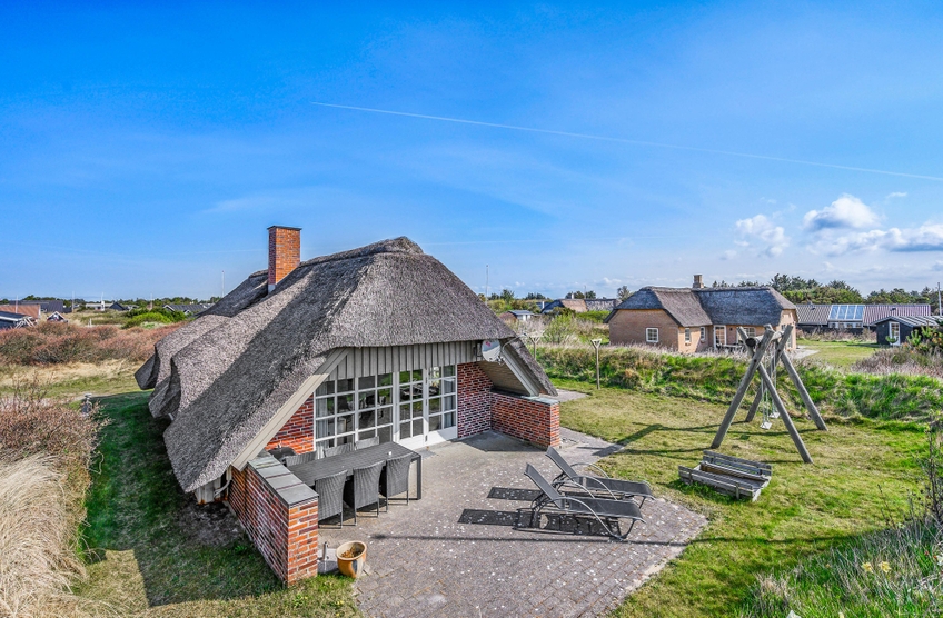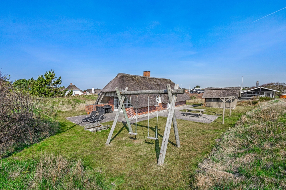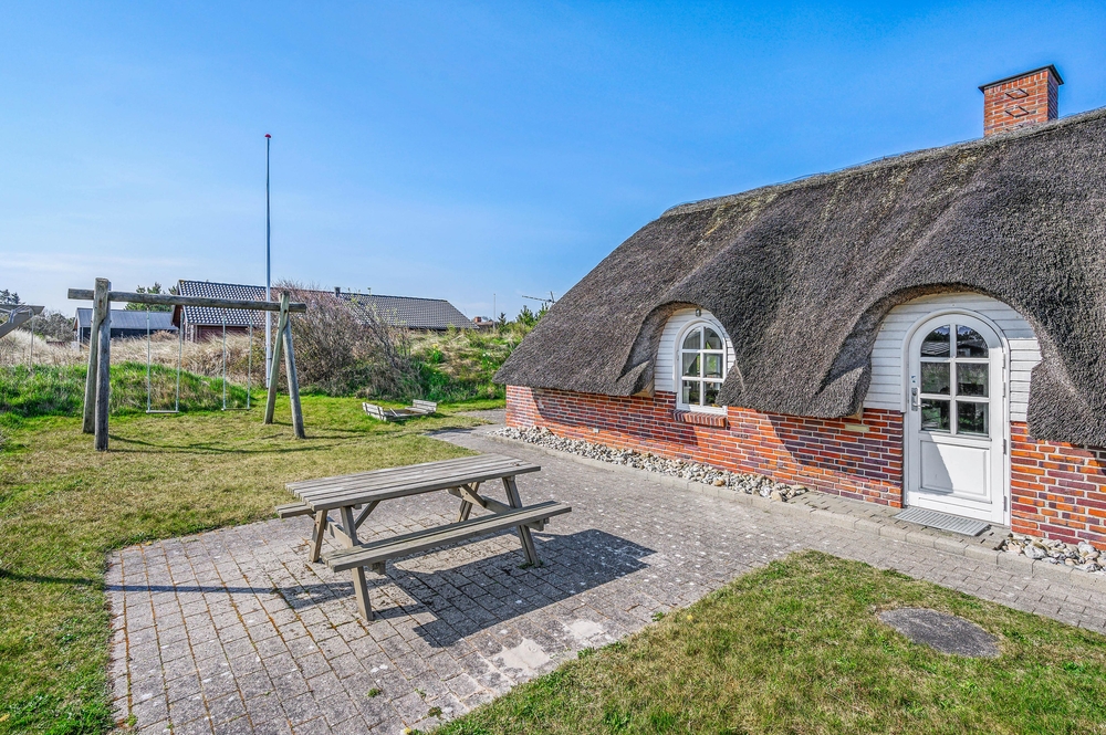 Ihr seid nur eine kleine Familie oder 4 Freunde, die gemeinsam eine entspannte Zeit an der dänischen Westküste verbringen möchten? Dann Willkommen in diesem schönen Sommerhaus. Das reetgedeckte und gemütliche Ferienhaus in Sondervig, idyllisch gelegen in einer Sackgasse auf Hjelmevej 101, ist ideal für eine Familie oder einen Urlaub mit Freunden und bietet Platz für bis zu 4 Personen. Mit seiner guten Lage, nur 800 Meter vom Strand und 1000 Meter vom Zentrum von Søndervig entfernt, ist es der perfekte Ausgangspunkt für euren Urlaub. Das Haus verfügt über eine Wärmepumpe, einen Kaminofen sowie zur Freude der Kinder über eine Schaukel und einen Sandkasten.