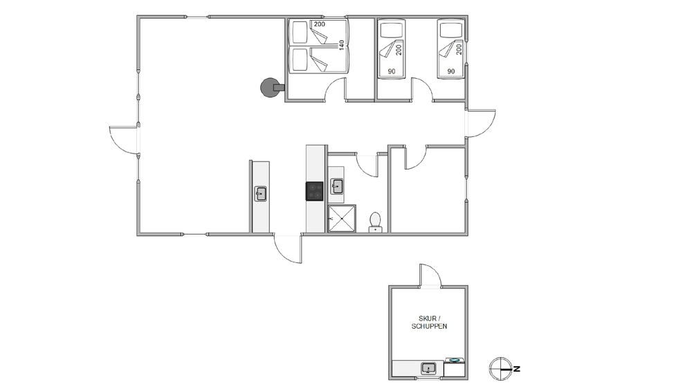 Das Ferienhaus ist gut für Familien gestaltet und bietet mit seinen 2 Schlafzimmern ausreichend Platz und Privatsphäre für bis zu 4 Personen. Der einladende Wohnbereich mit Kaminofen schafft eine warme und behagliche Atmosphäre, in der ihr entspannte Abende verbringen könnt. Die 70 m² Wohnfläche sind optimal genutzt und bieten genügend Raum zum Wohlfühlen.