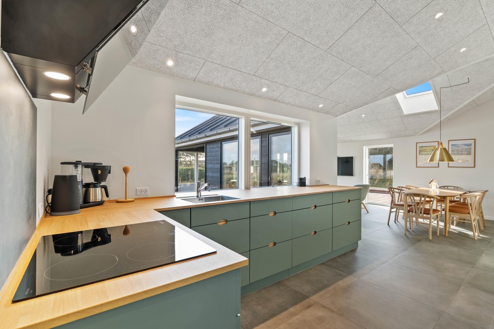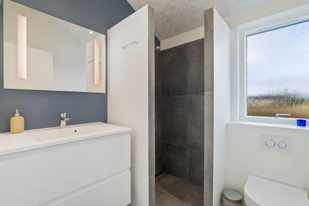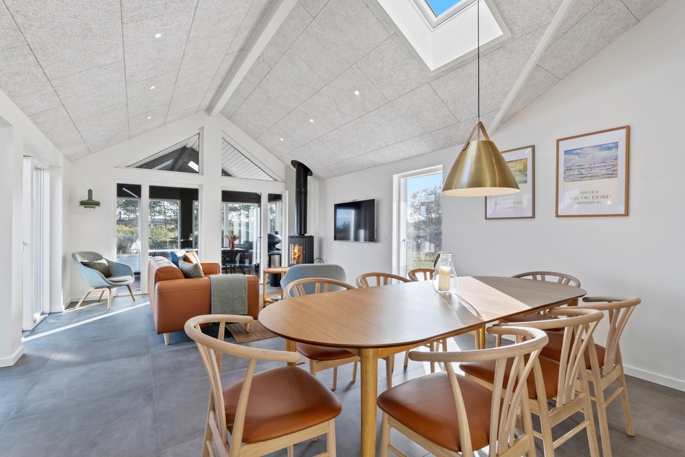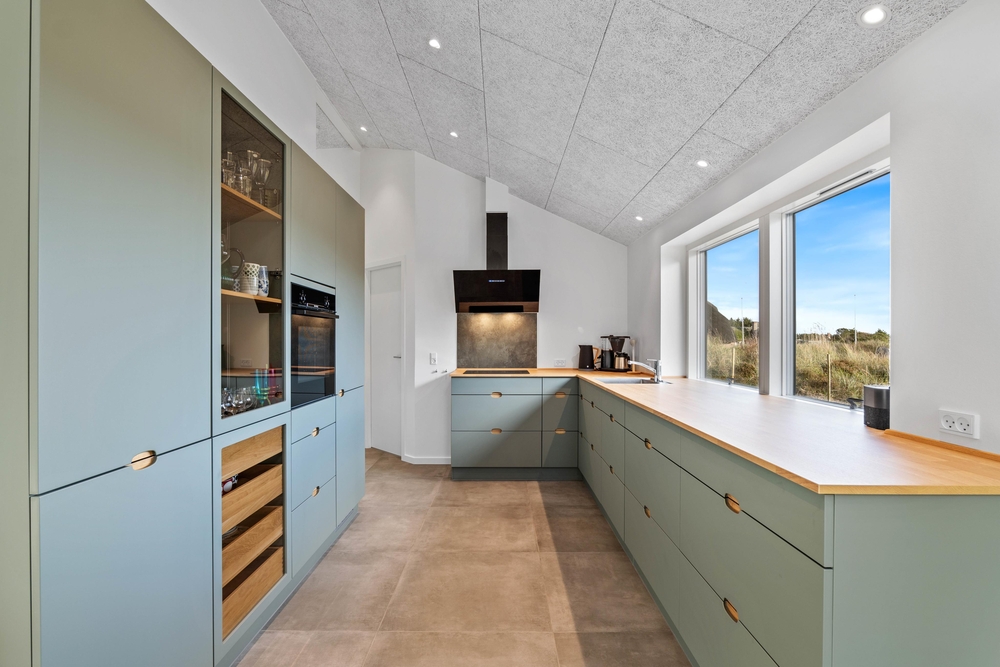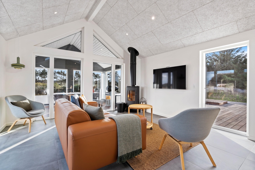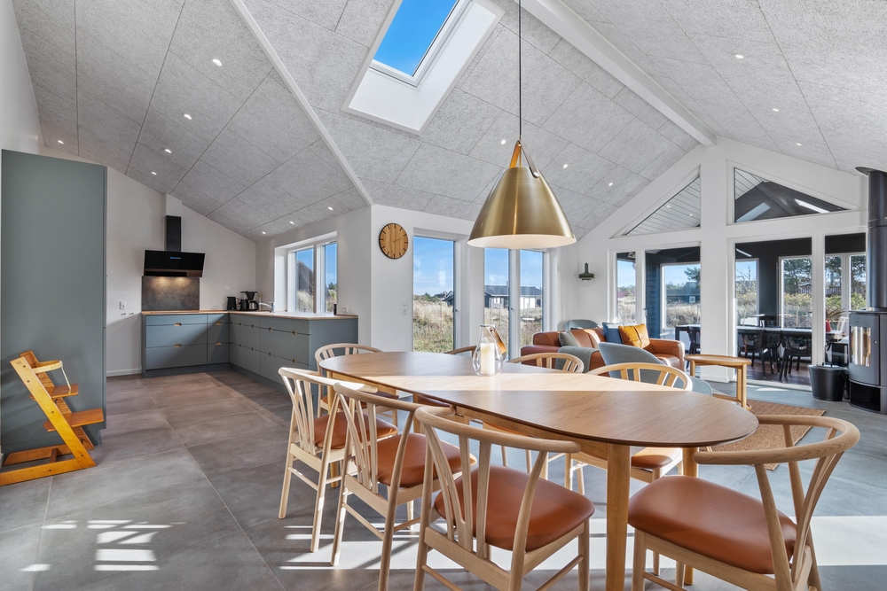 Das Sommerhaus auf Hjelmevej 155 in Søndervig wurde in 2022 gebaut, und ihr werdet von einer modernen Einrichtung begrüßt, in der ihr euch wohlfühlen werdet. Oberlichter und große Fenster lassen viel Licht herein und sorgen so für die richtige Urlaubsstimmung.