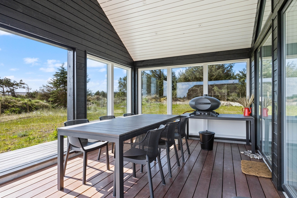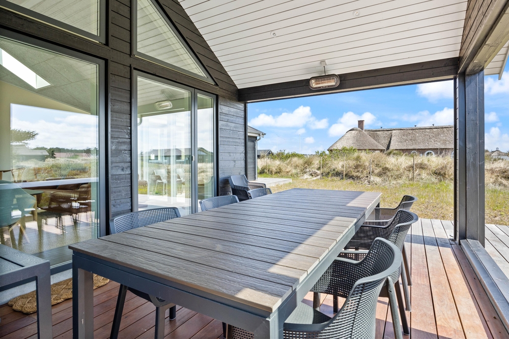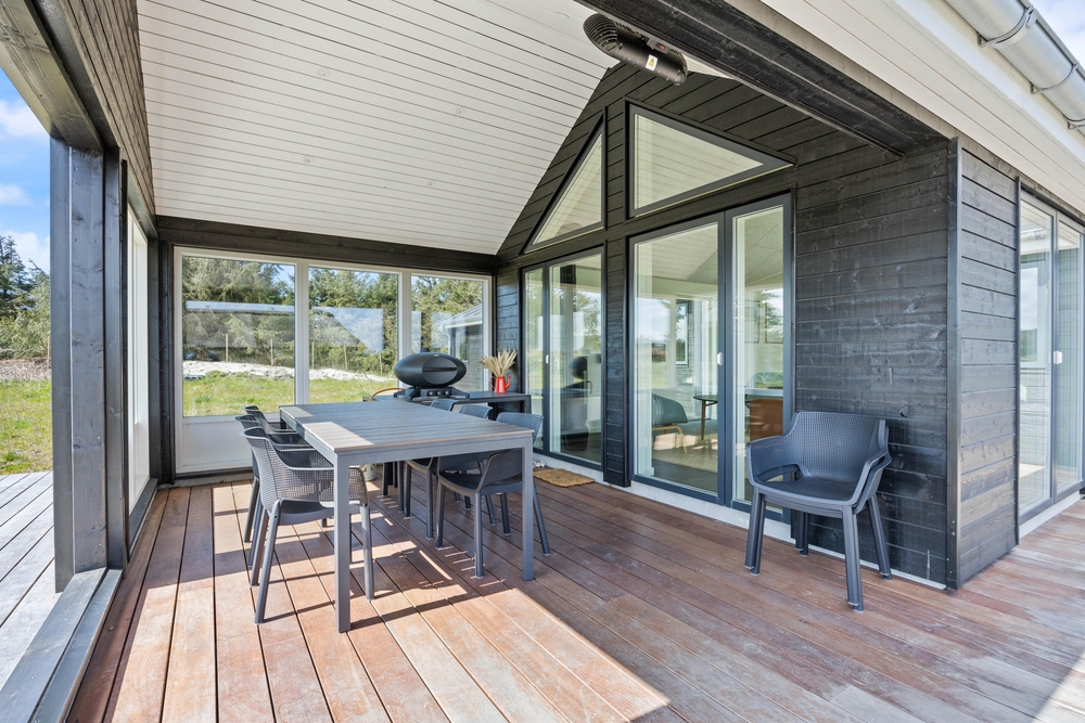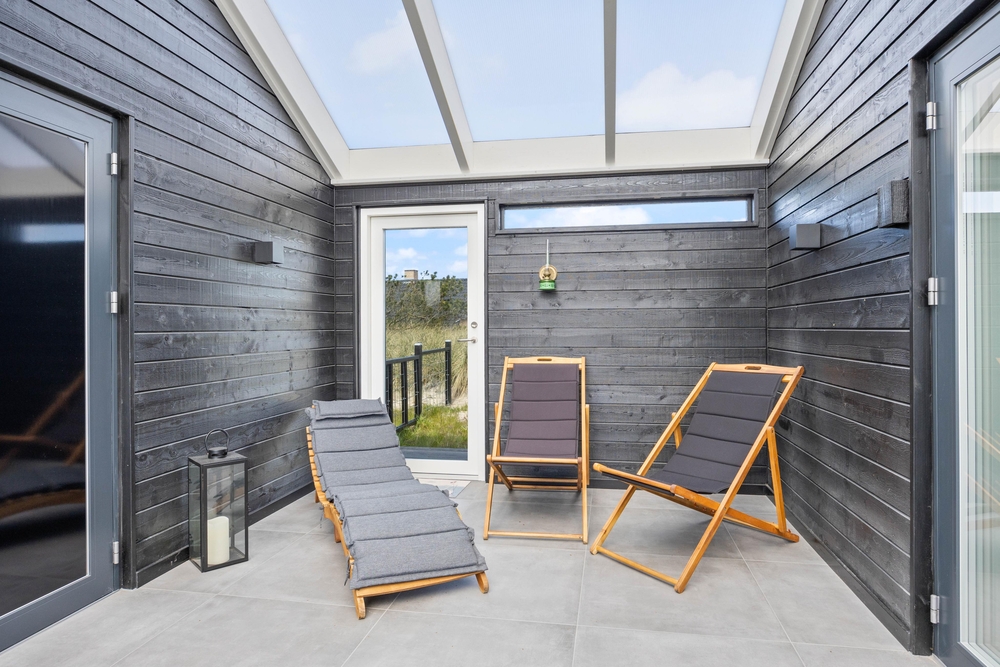 Das Sommerhaus bietet einen schönen Außenbereich, sodass ihr dort viele schöne Momente an der frischen Luft genießen könnt. Es gibt Gartenmöbel und Liegestühle, auf denen ihr es euch in der Sonne bequem macht. Ein Teil der Terrasse ist auch überdacht und somit geschützt, sodass ihr hier auch bei unbeständigem Wetter geschützt sitzen könnt.