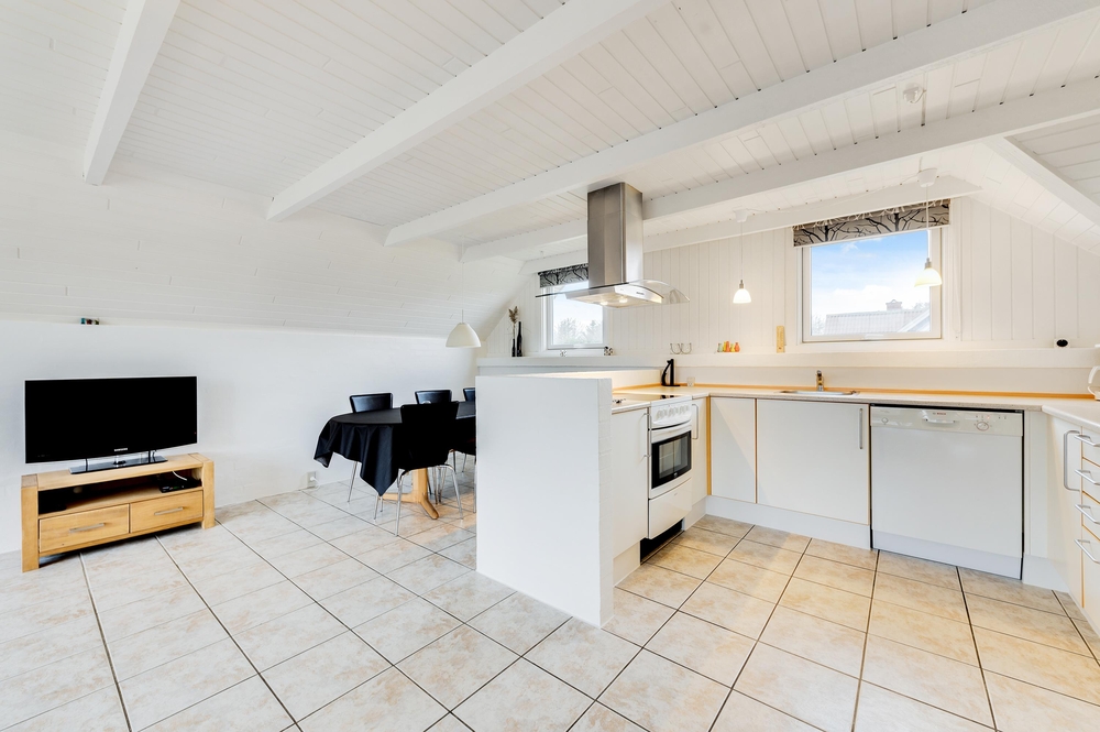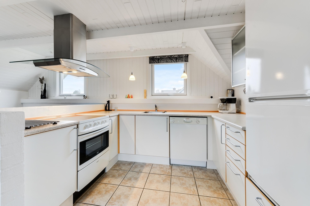 Ihr findet hier gepflegtes Ferienhaus mit einer guten und praktischen Einrichtung. Es gibt Platz für sechs Personen die sich auf die 3 Schlafzimmer, die alle mit Doppelbetten ausgestattet sind, verteilen können. Das Ferienhaus hat ein schönes und helles Badezimmer mit Dusche und Fußbodenheizung. Um euch die Möglichkeit zu geben, euch richtig zu entspannen, verfügt das Ferienhaus auch über eine Sauna, die euch ein zusätzliches Gefühl von Urlaub und Entspannung vermittelt. Der Wohnbereich mit integrierter Küche ist hell und gemütlich mit komfortablen Möbeln eingerichtet. Vom Wohnzimmer aus habt ihr einen direkten Zugang zu einer teilweise überdachten Terrasse.