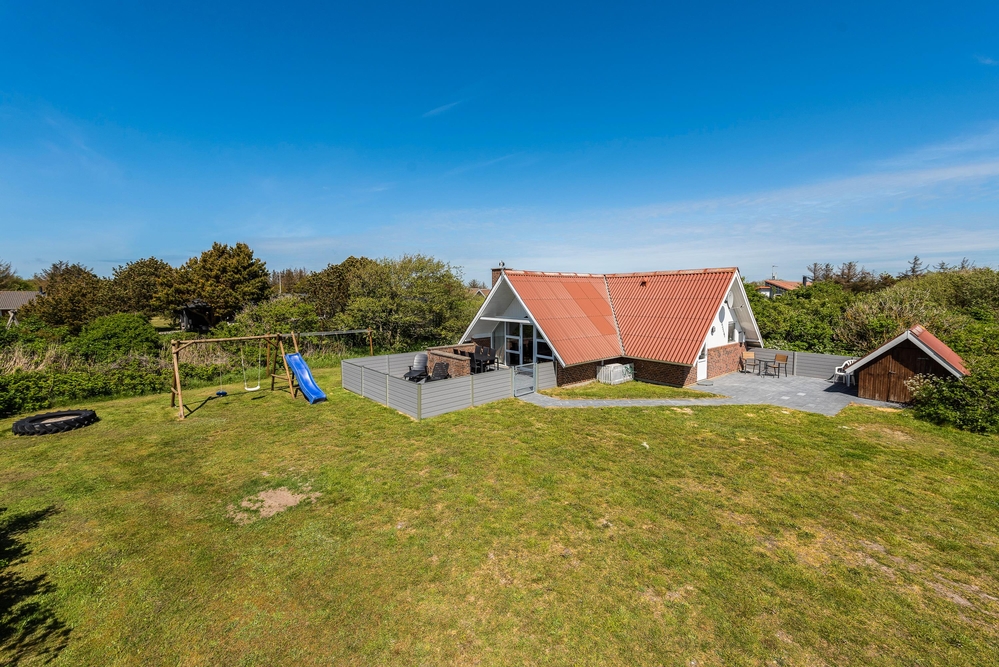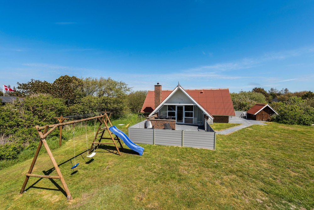 Das Ferienhaus im Hjelmevej 31 in Søndervig befindet sich in ruhiger Lage auf einem Naturgrundstück zwischen Nordsee und Fjord. Die Terrasse kann komplett geschlossen werden, was vor allem für kleine Kinder oder einen Hund von Vorteil ist. Das Ferienhaus bietet auf 85 m2 Platz für bis zu 6 Personen und eignet sich besonders gut für einen Familienurlaub. Dank Schaukel, Sandkasten und großem Rasengrundstück kommen auch Kinder auf ihre Kosten. Für Entspannung sorgen die hauseigene Sauna und der Whirlpool.