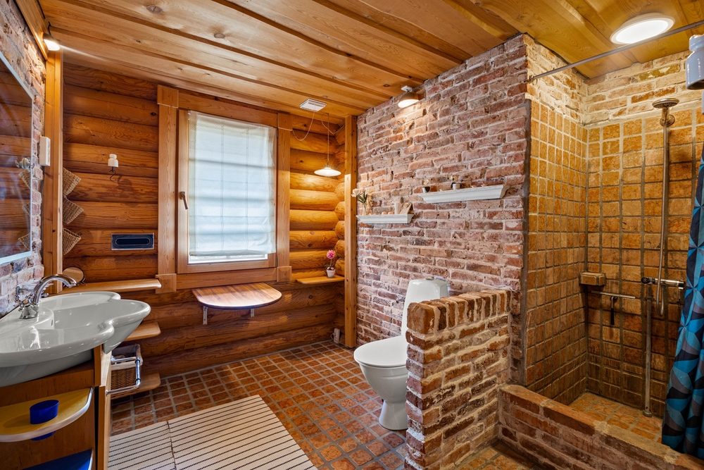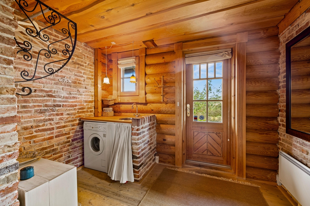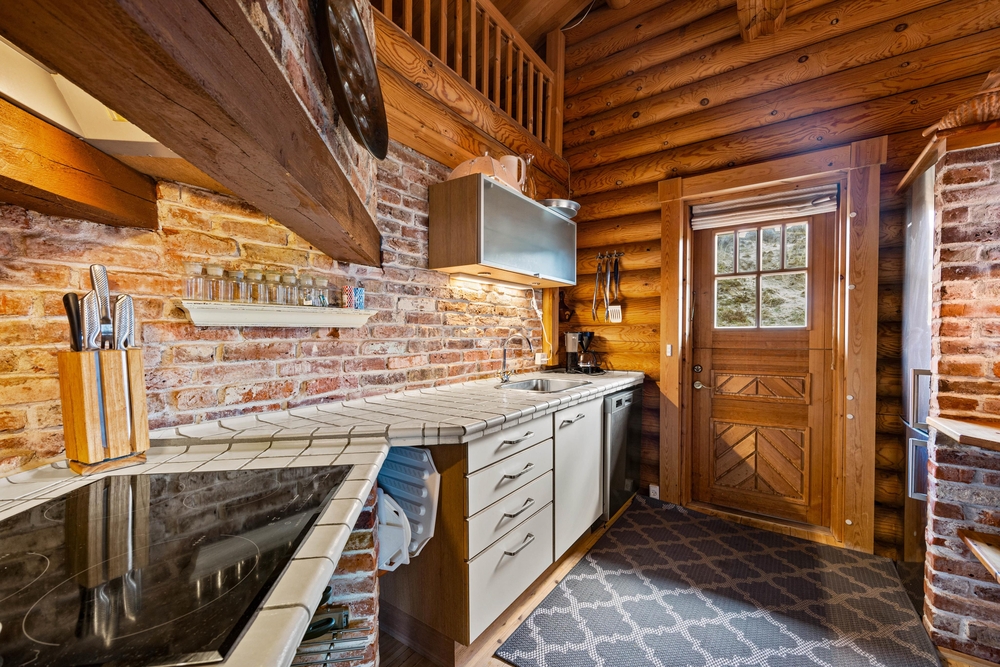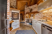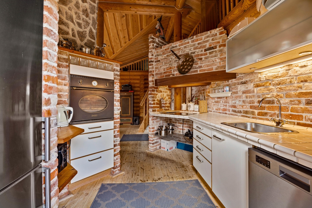 Nicht nur Außen, sondern auch im Inneren des Ferienhauses ist der Stil der Blockhütte durchgeführt. Ihr habt die sichtbaren Hüttenbalken in Naturfarben, die für viel Gemütlichkeit sorgen. Zentral im kombinierten Wohnraum findet ihr den gemauerten Holzofen, der nicht nur für eine kuschele Wärme, sondern mit dem Knistern des Holzes viel Gemütlichkeit verbreitet. Der Fernseher bietet 3 deutsche Kanalen.